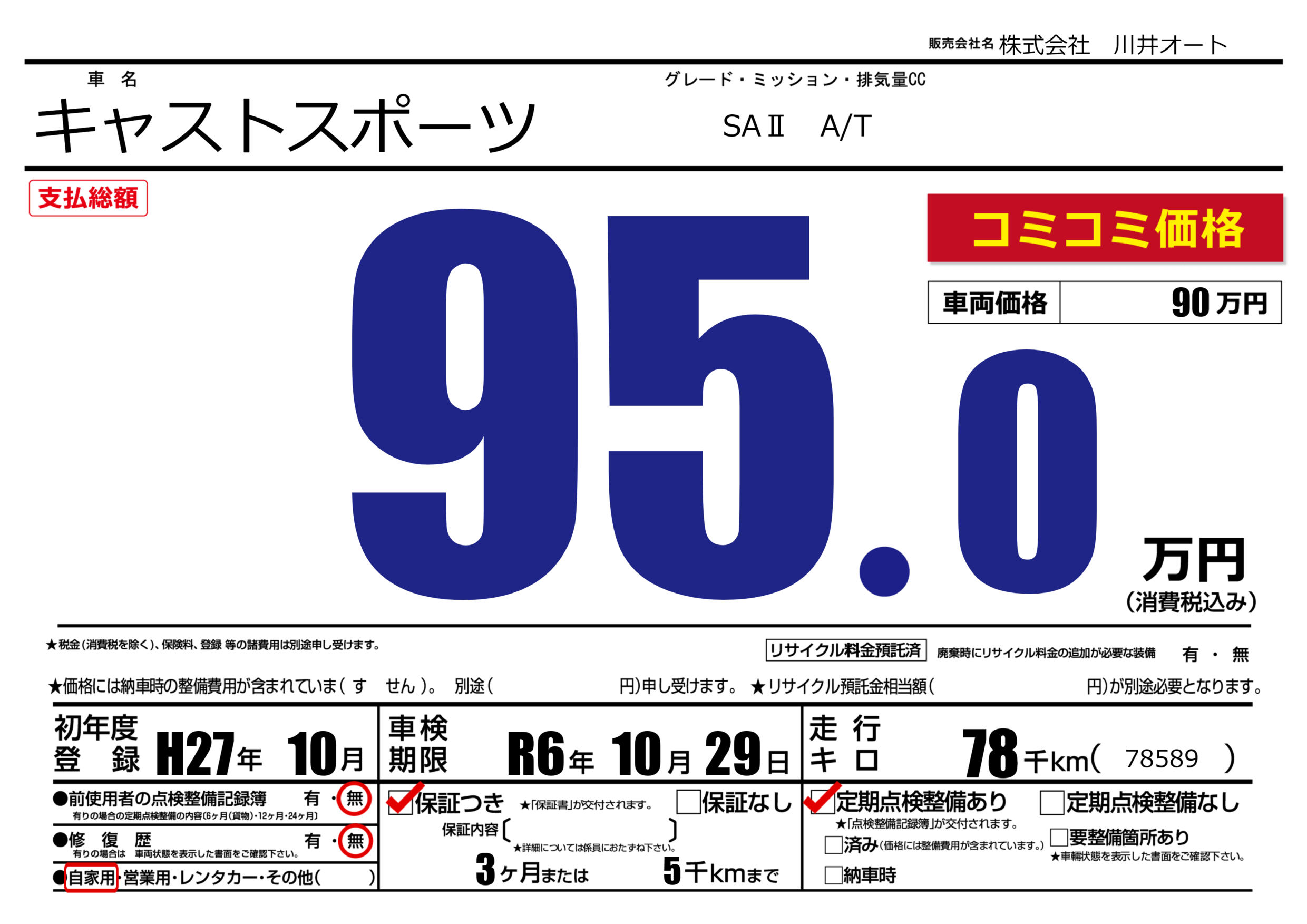 保証付き 保証内容(---) 3ヶ月または(5)千kmまで |