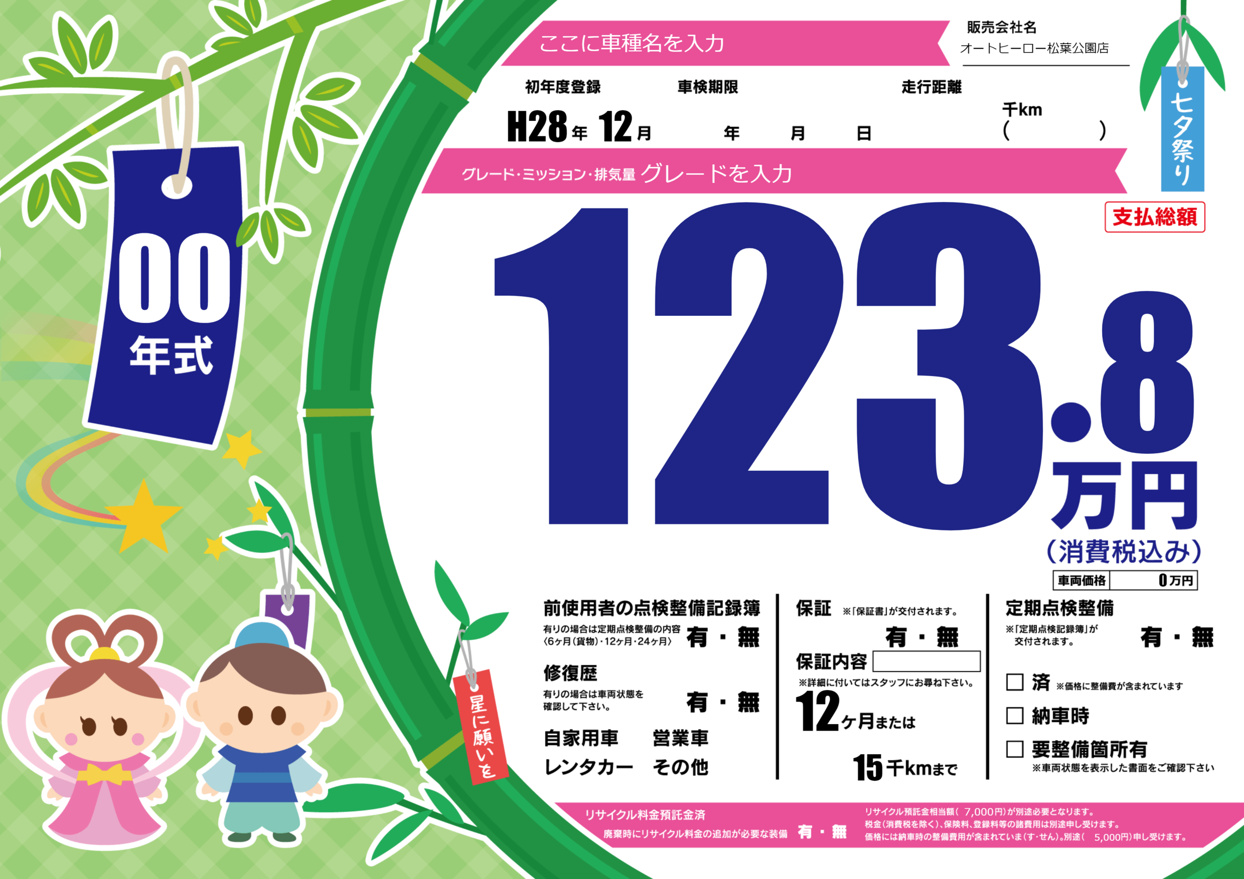| 車名 | ここに車種名を入力 | グレード ミッション 排気量 |