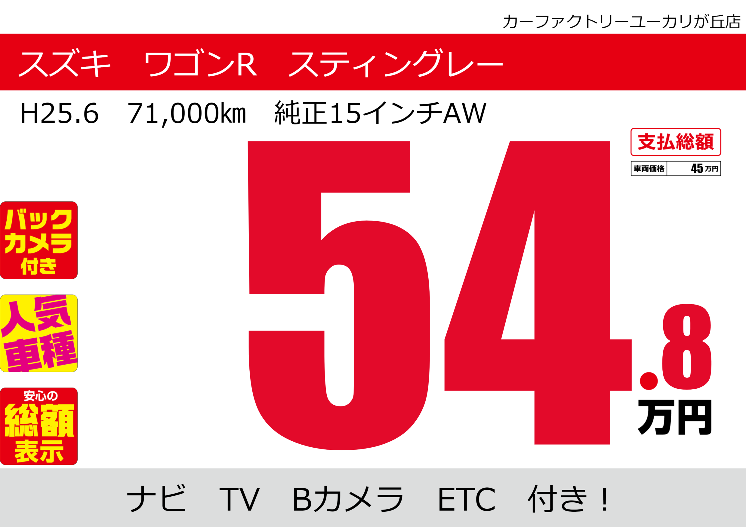 | 車名 | スズキ ワゴンR スティングレー | グレード ミッション 排気量 |