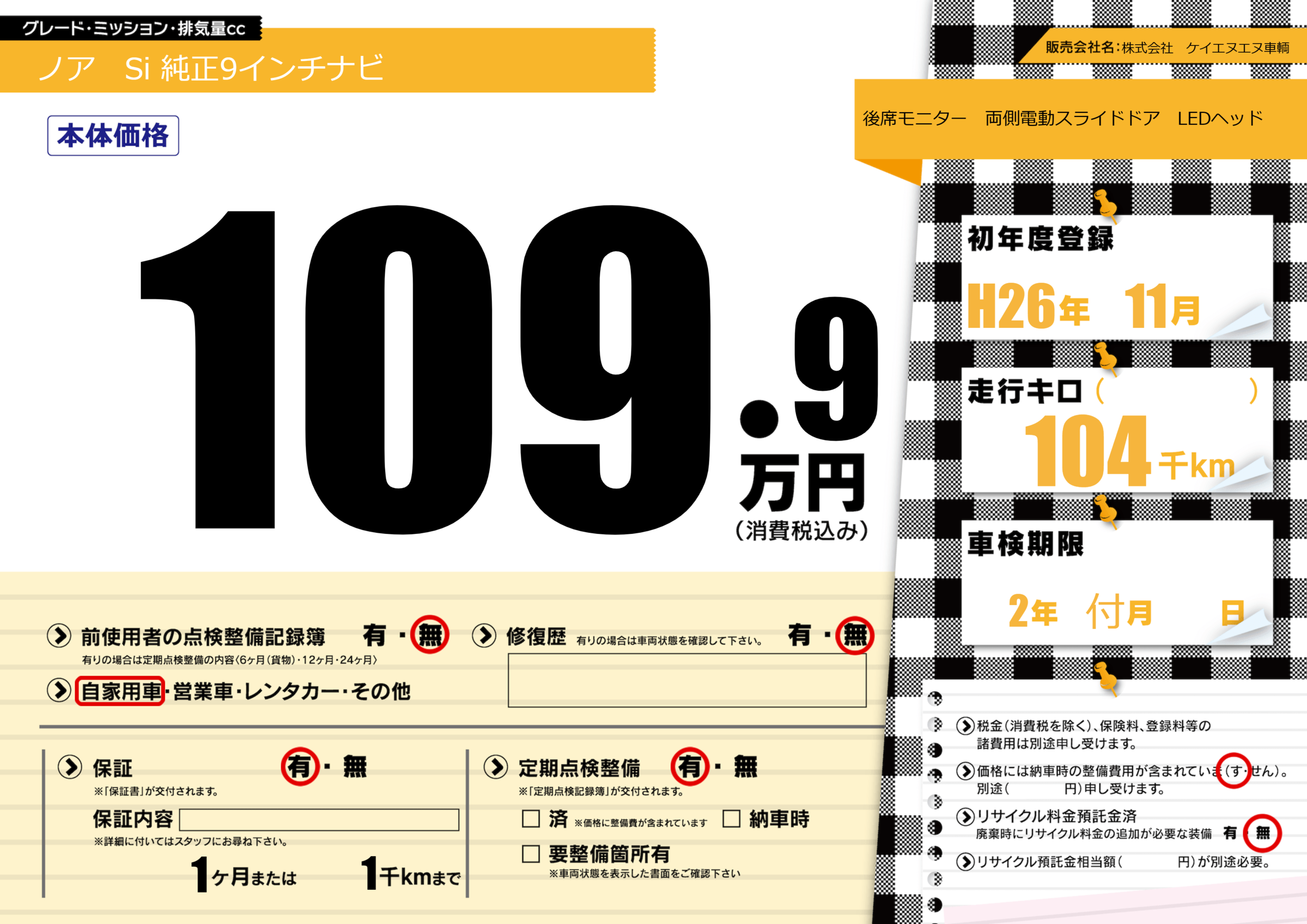 | 走行キロ | 10.4万km | 初年度登録 | H26年11月 |