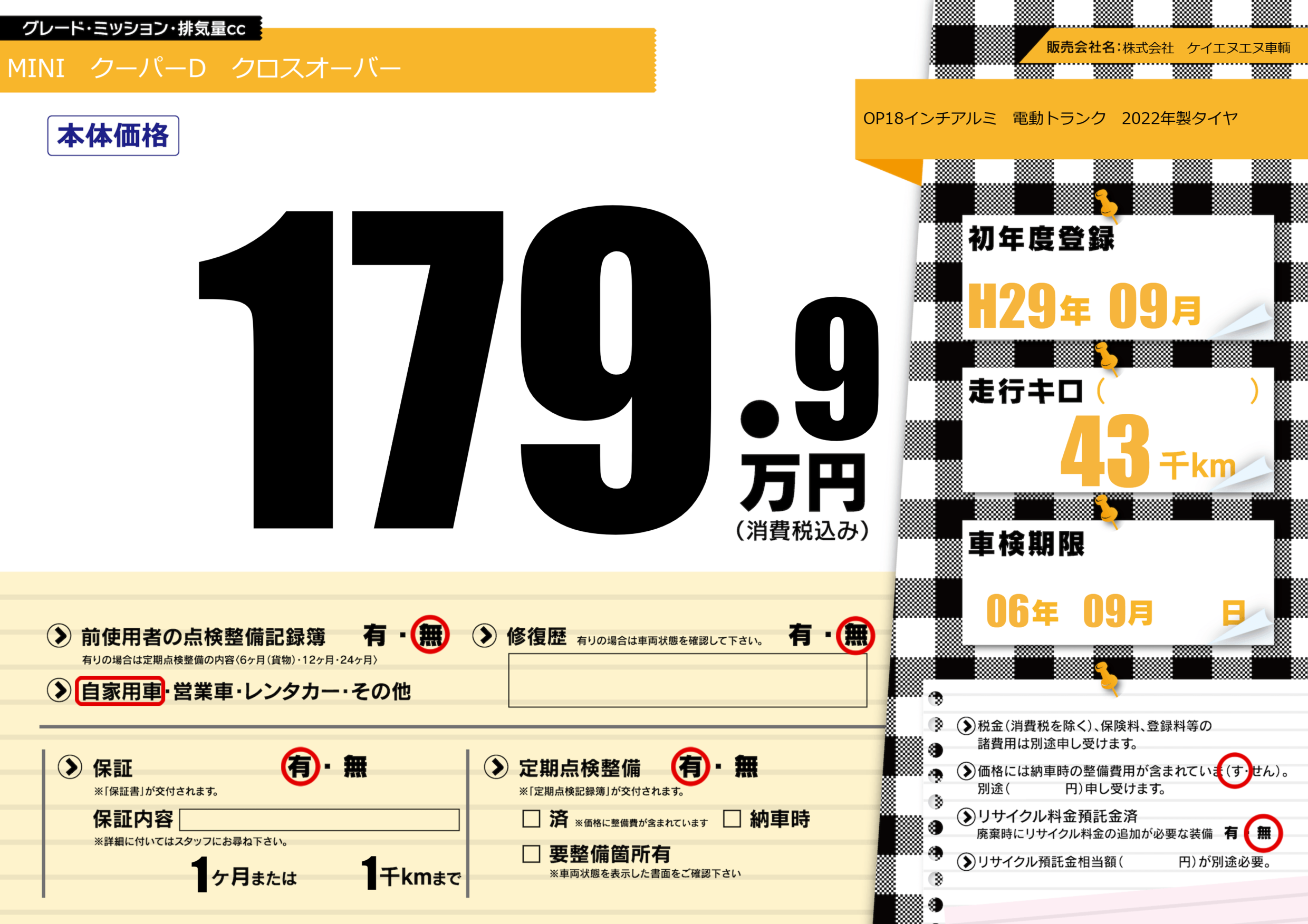 | 定期点検整備 | 定期点検整備あり | ||