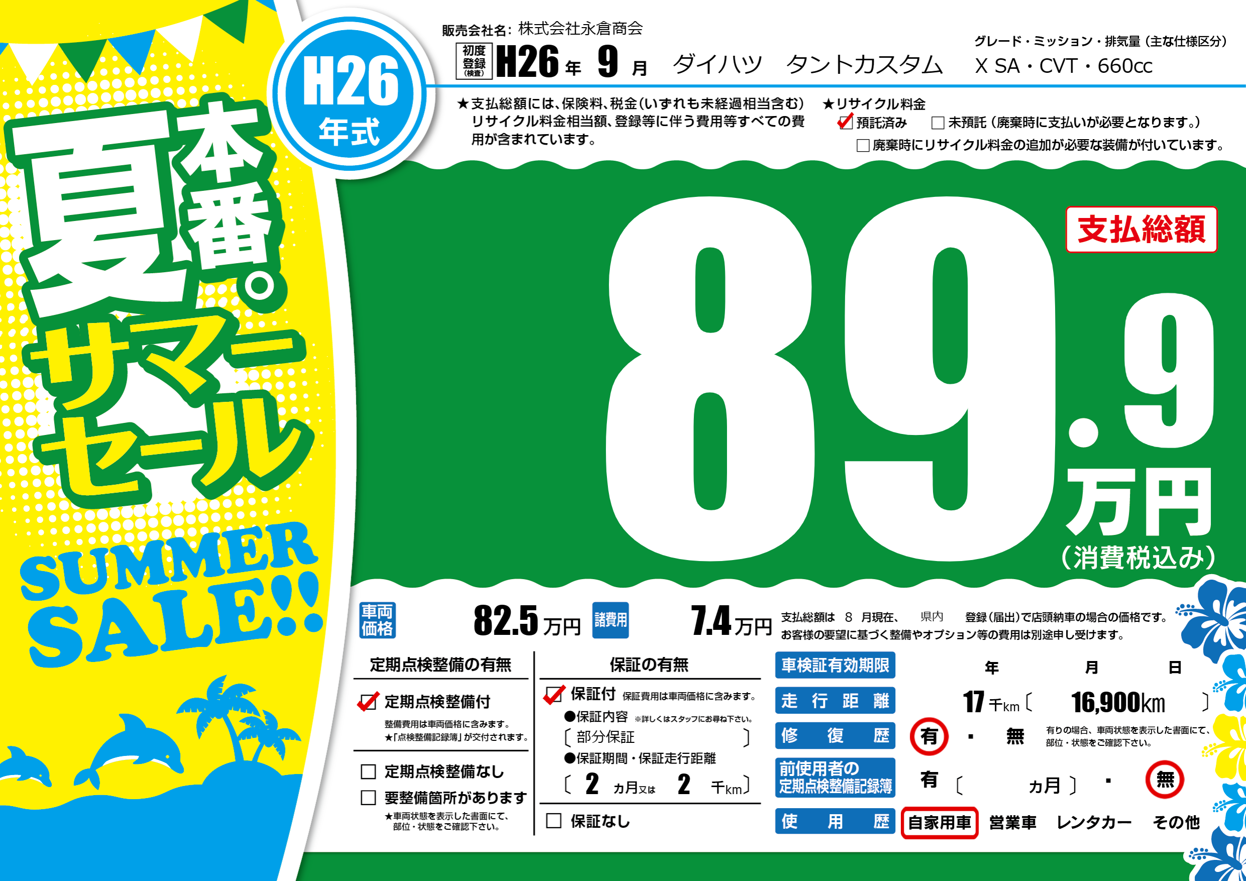 | 走行キロ | 1.7万km | 初年度登録 | H26年9月 |