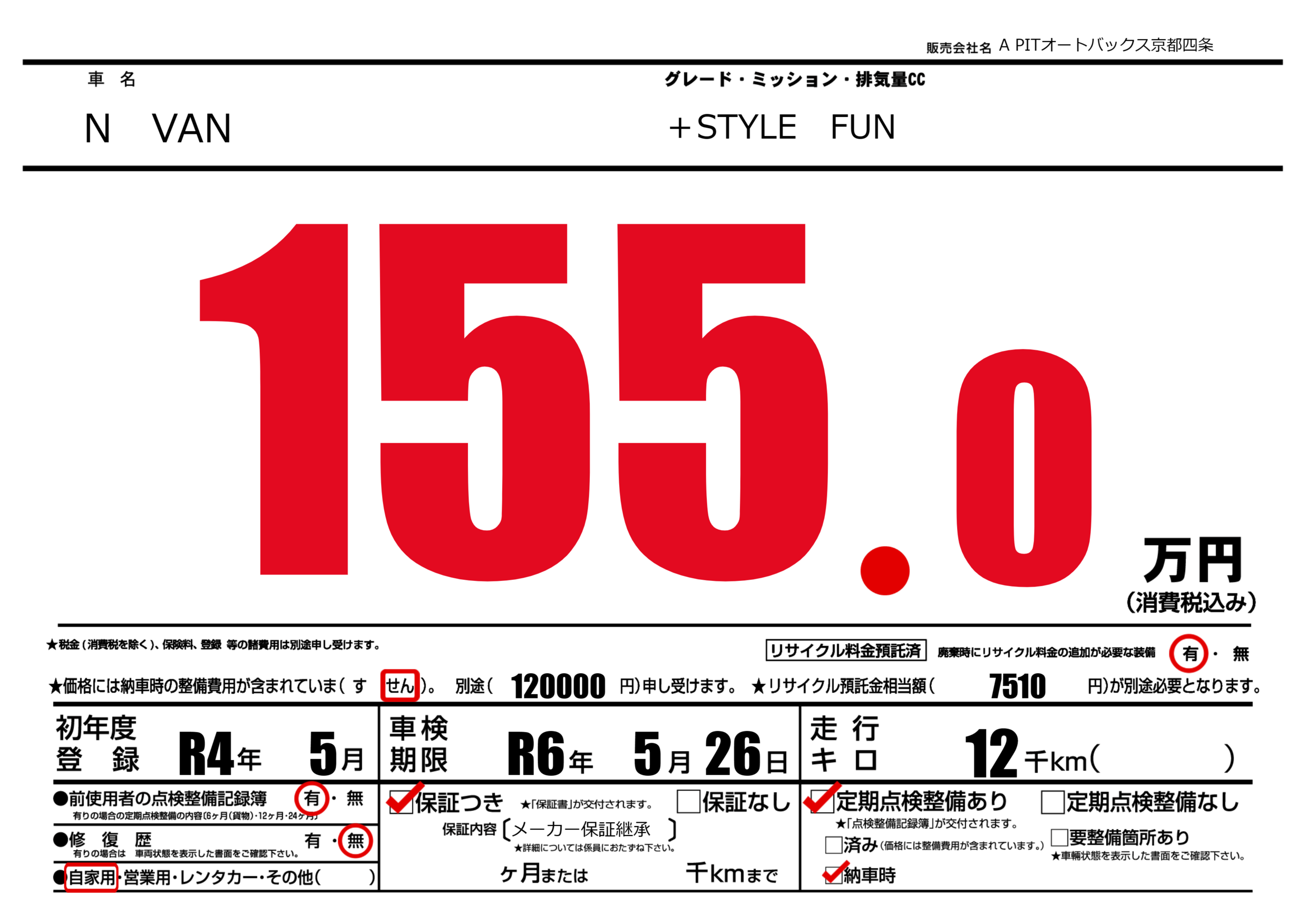 車検制限 | R6年5月26月 |