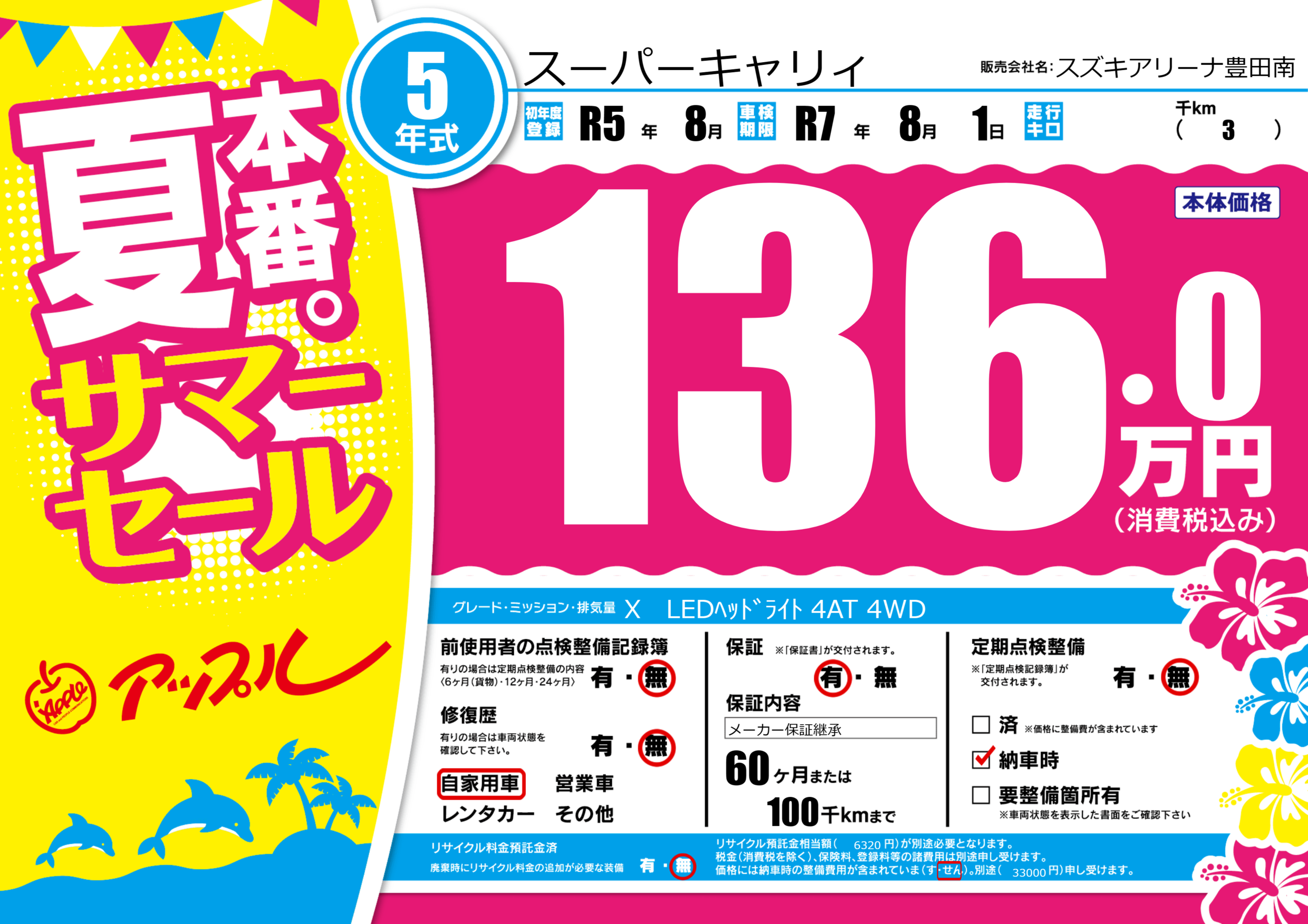 | 初年度登録 | R5年8月 | ||
