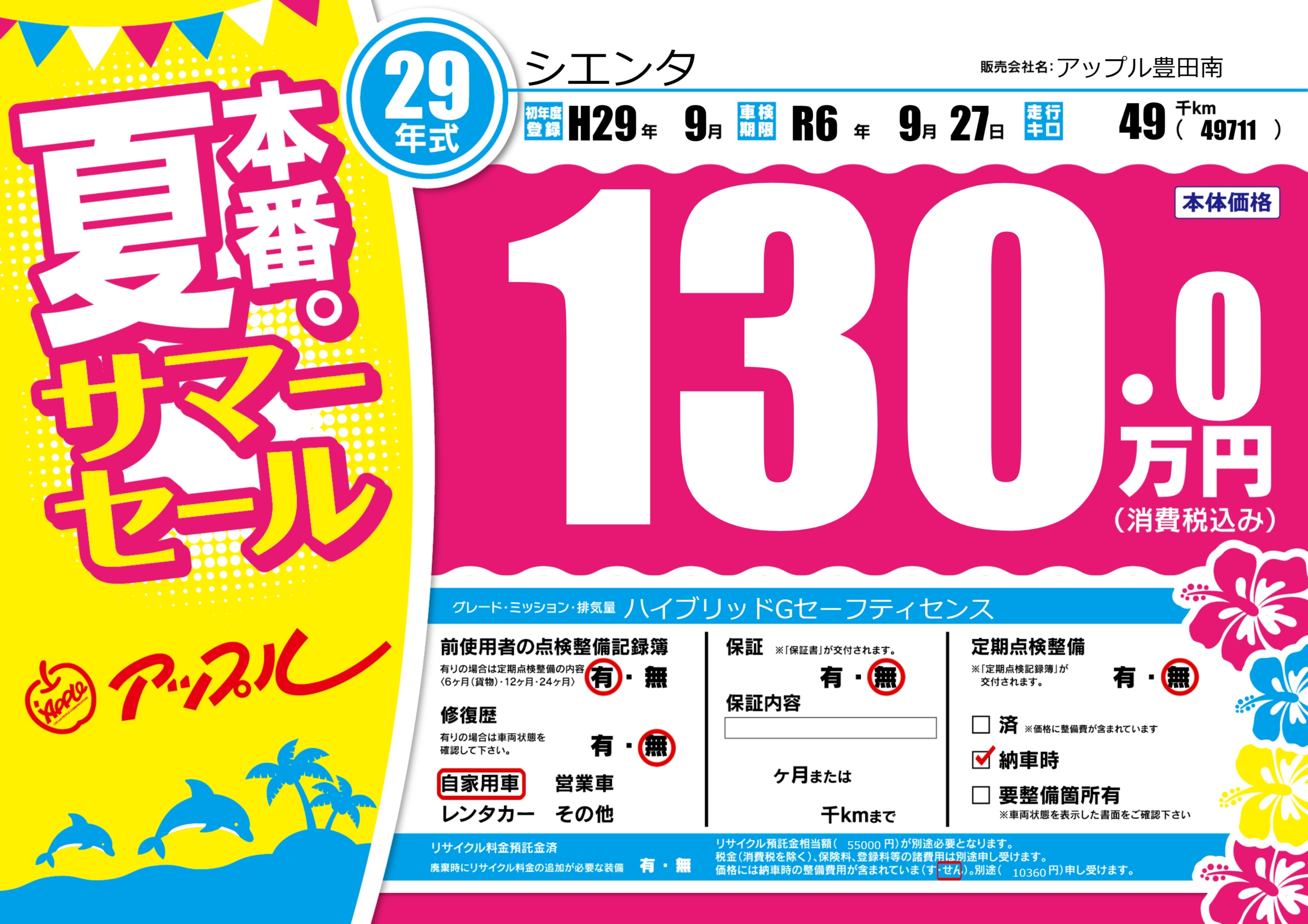 | 車名 | シエンタ | グレード ミッション 排気量 |