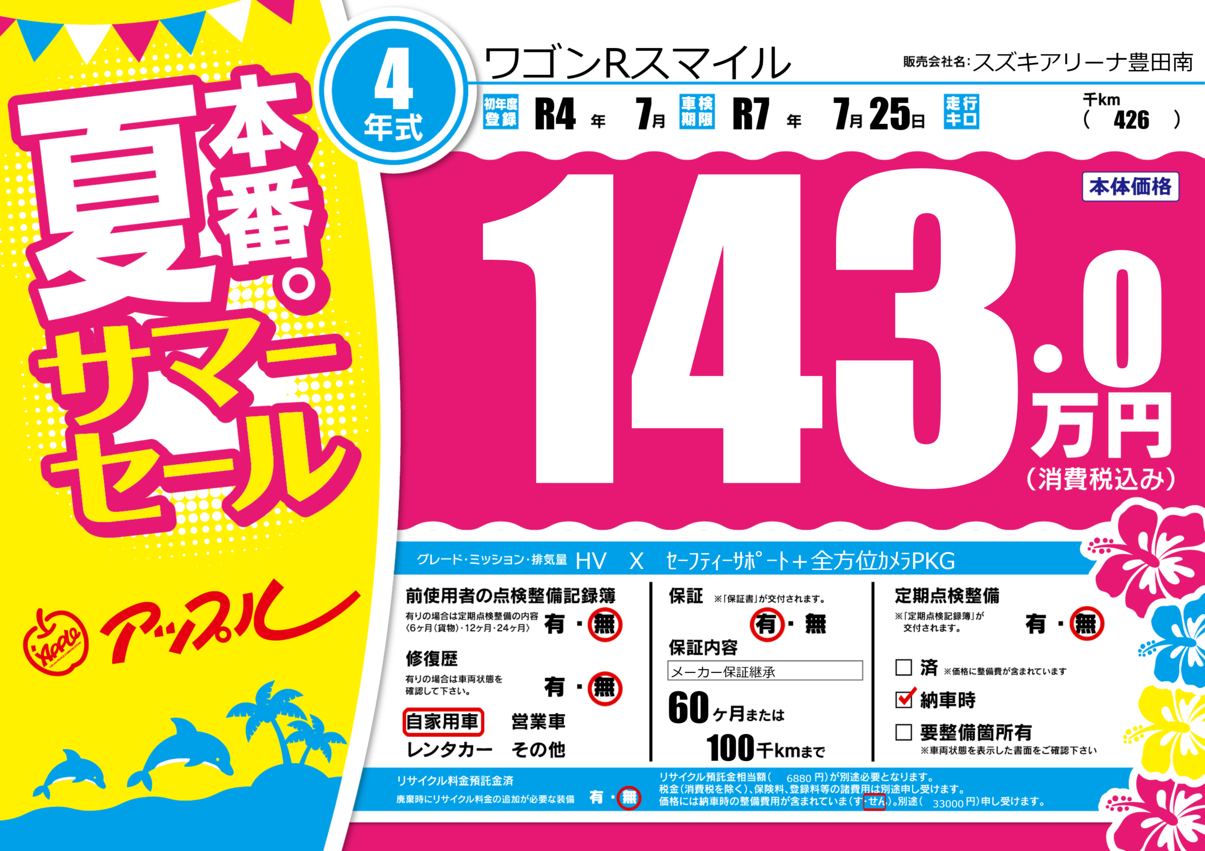 | 走行キロ | - | 初年度登録 | R4年7月 |