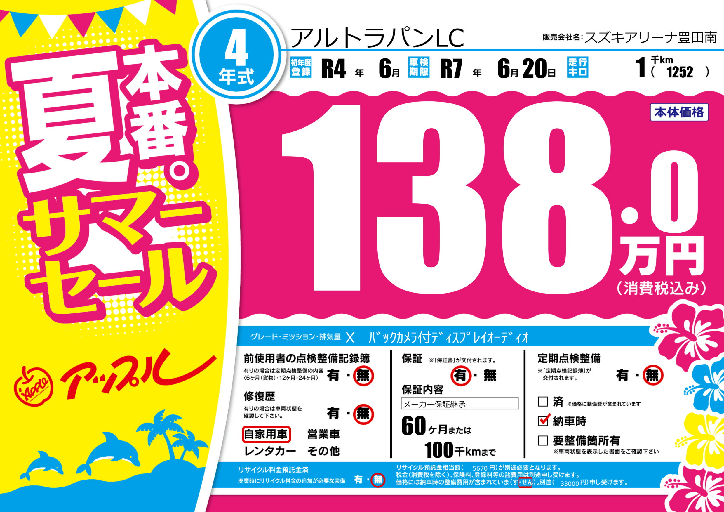 | 走行キロ | 0.1万km | 初年度登録 | R4年6月 |