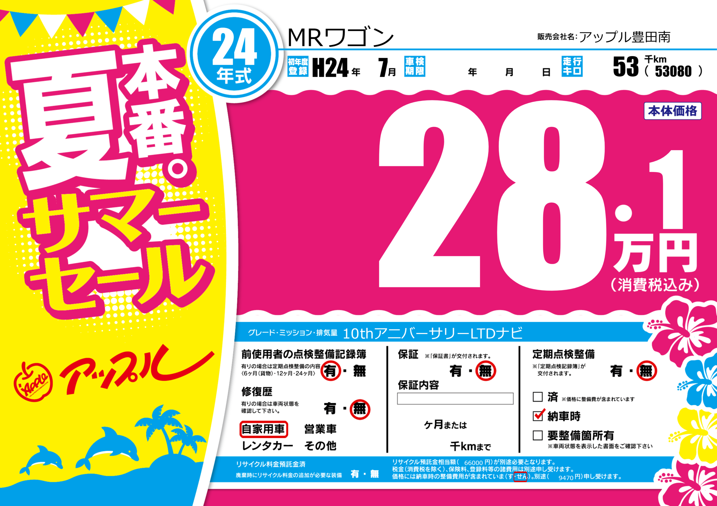 | 走行キロ | 5.3万km | 初年度登録 | H24年7月 |