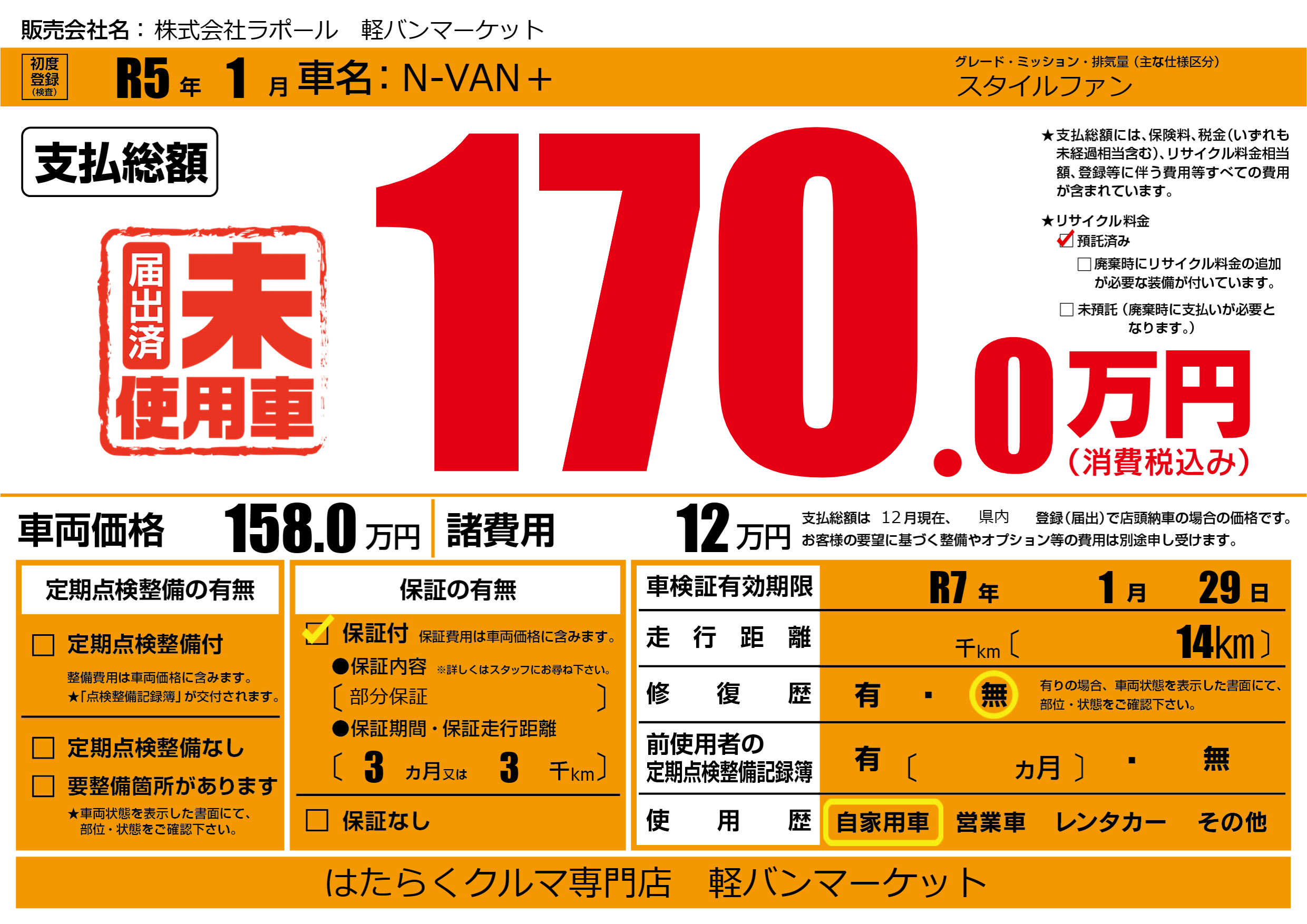 なし | 車検制限 | R7年1月29月 |
