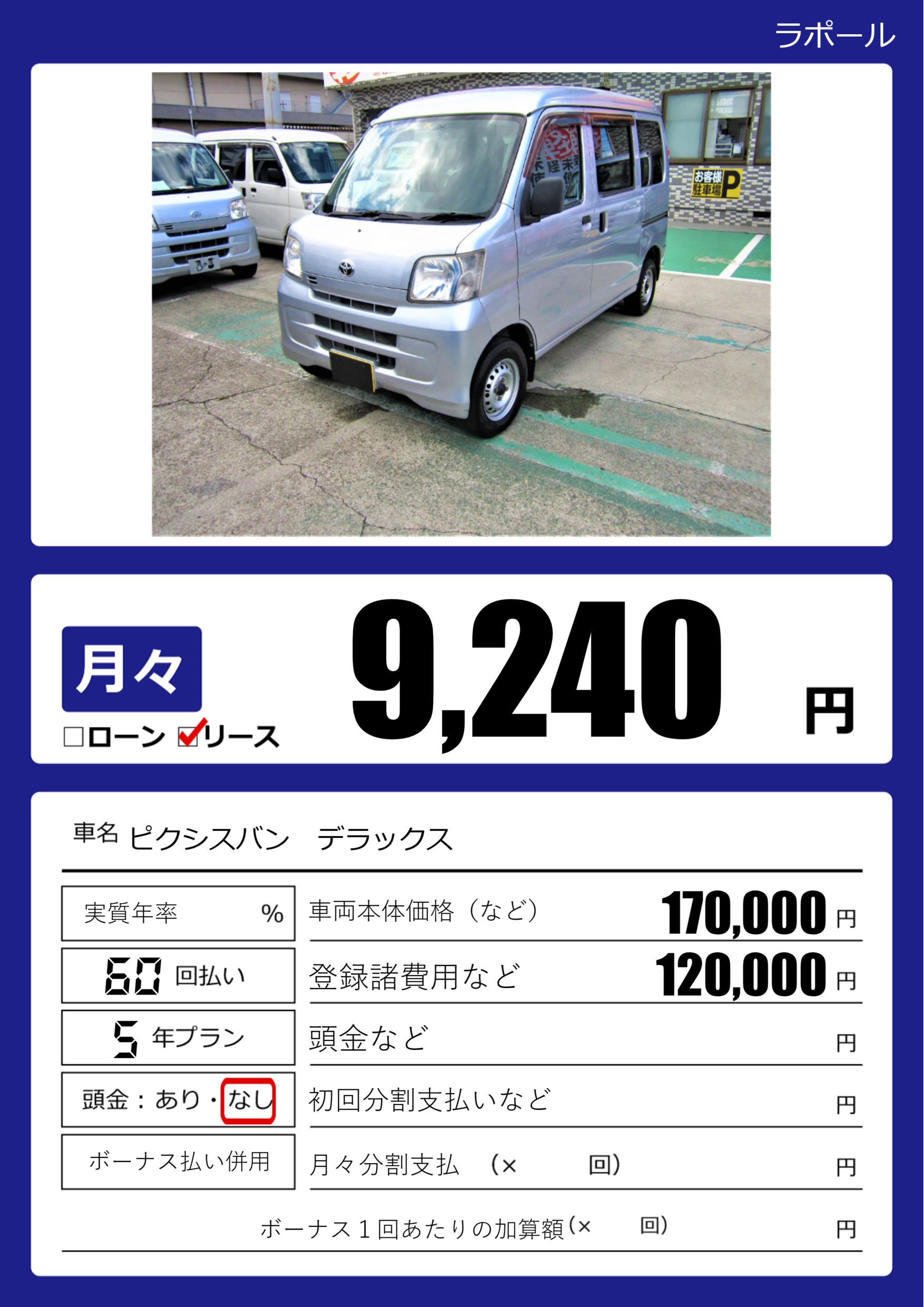 | 車名 | ピクシスバン デラックス | グレード ミッション 排気量 |