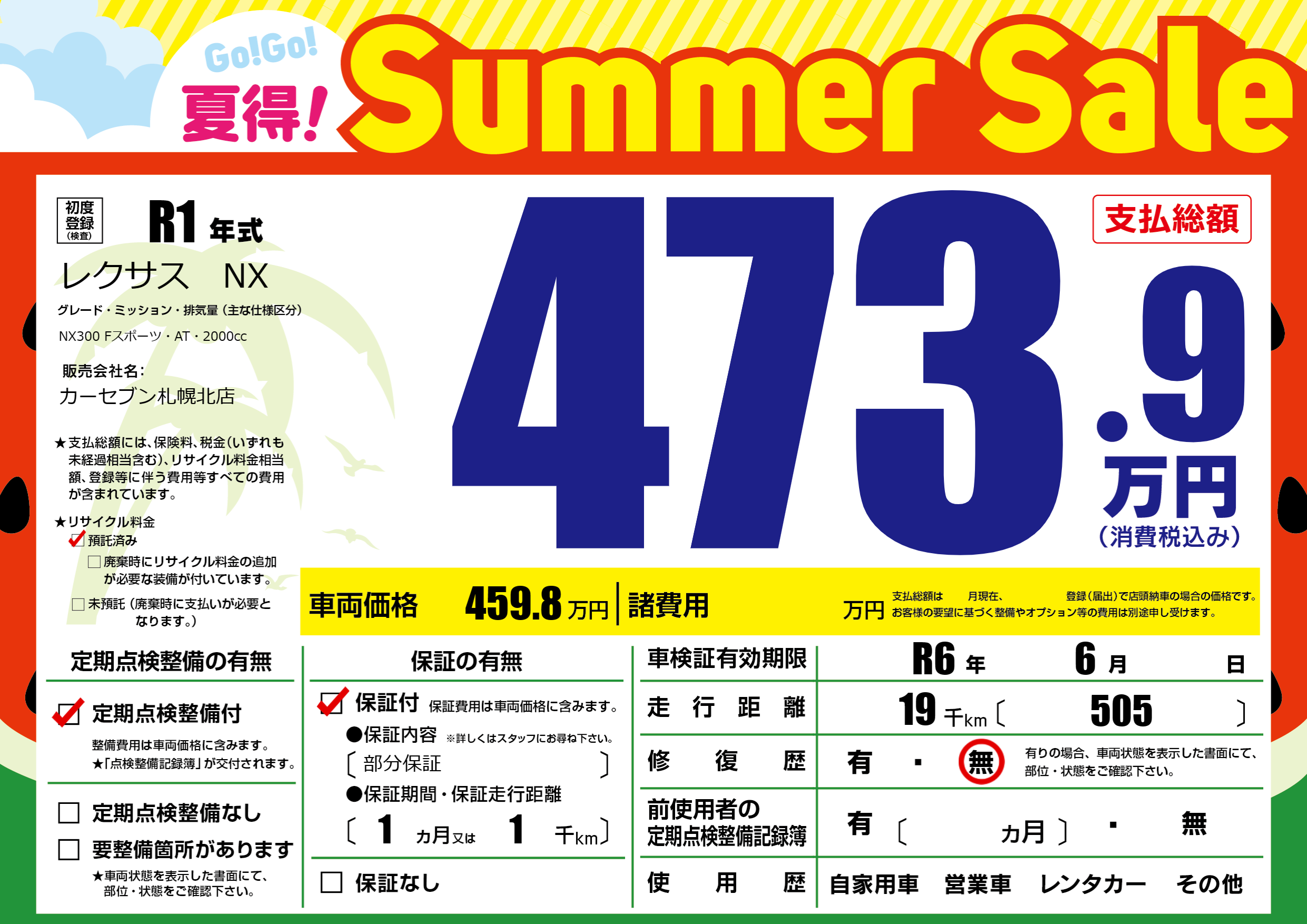 | 車検制限 | R6年 6月 - 日 | ||