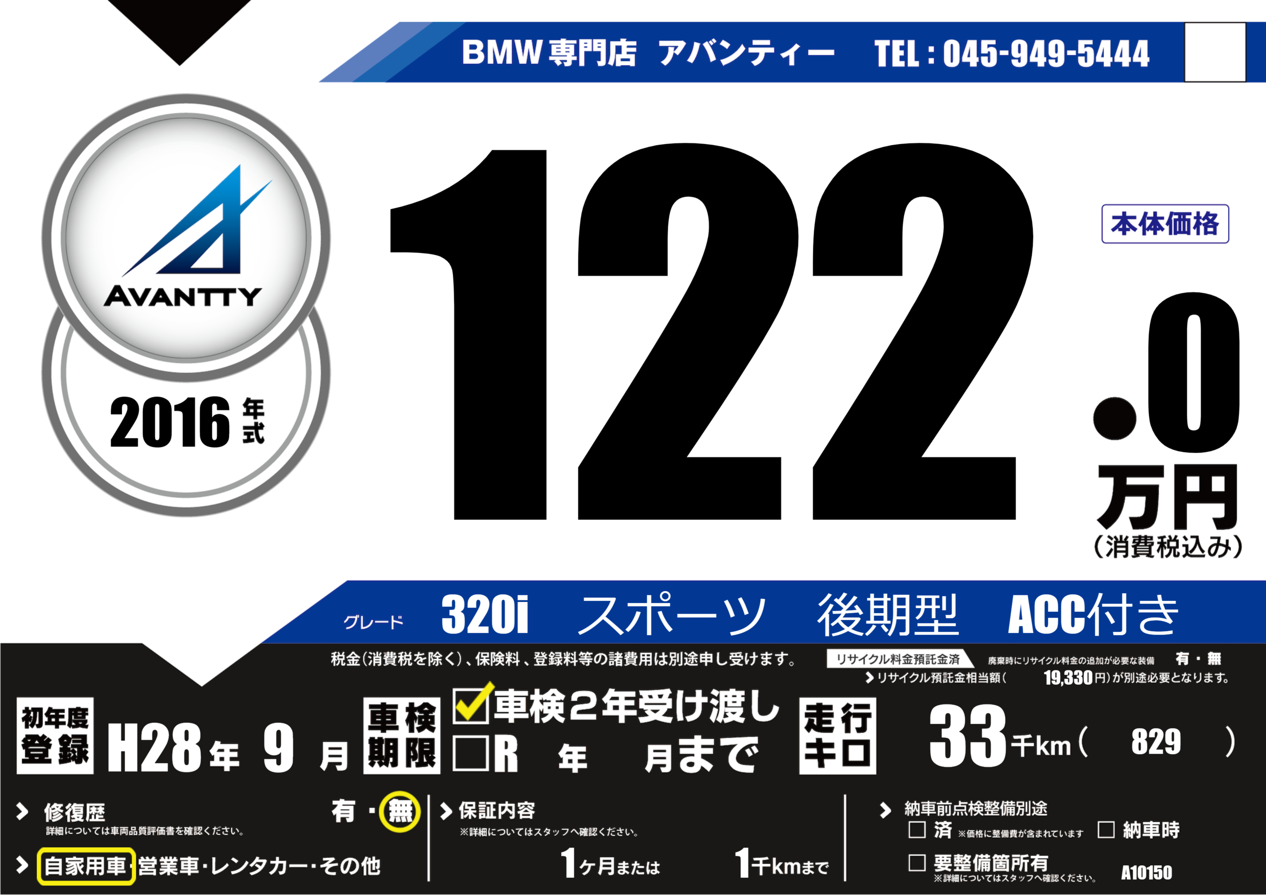 | 走行キロ | 3.3万km | 初年度登録 | H28年9月 |