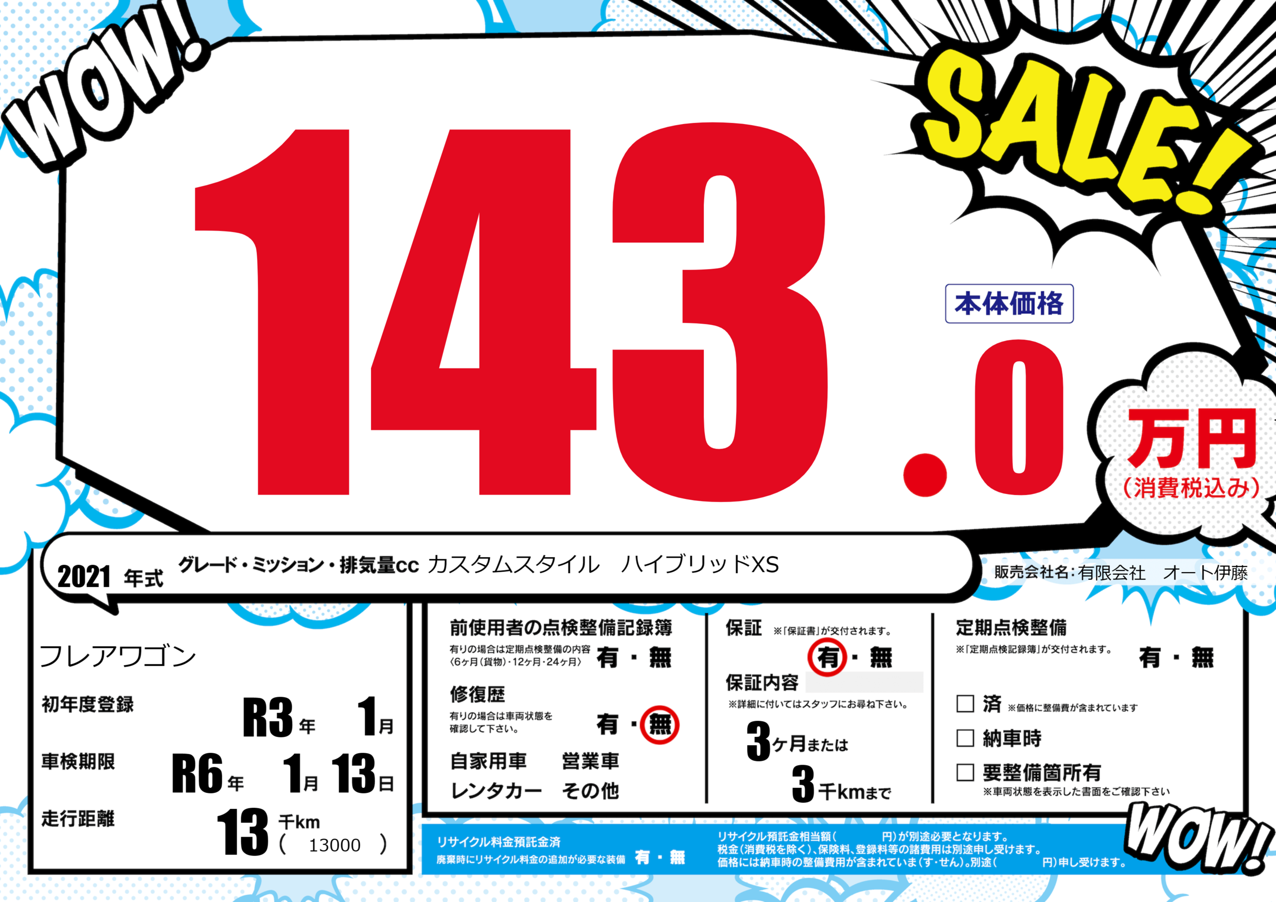 | 車名 | フレアワゴン | グレード ミッション 排気量 |