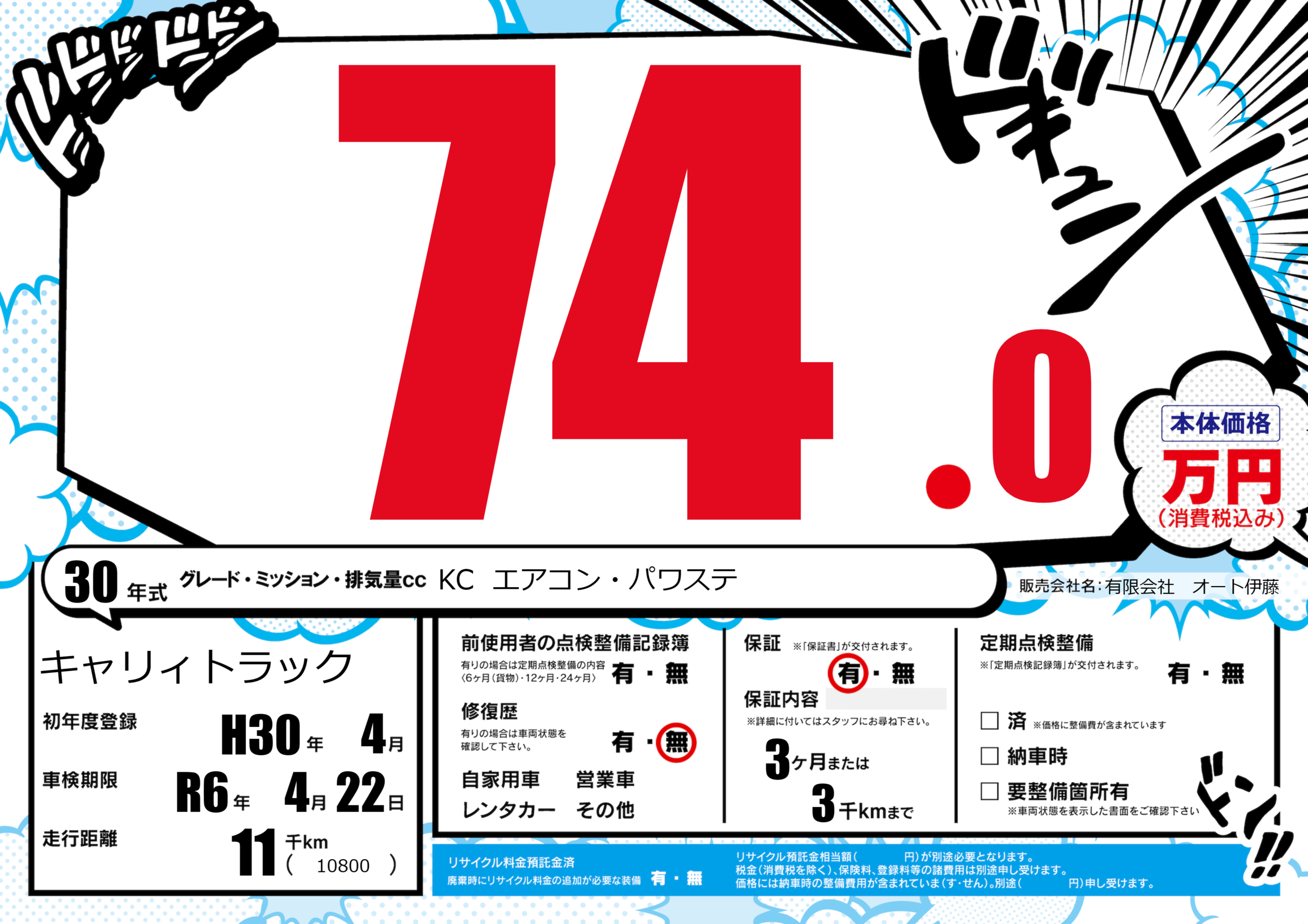 | 車名 | キャリィトラック | グレード ミッション 排気量 |