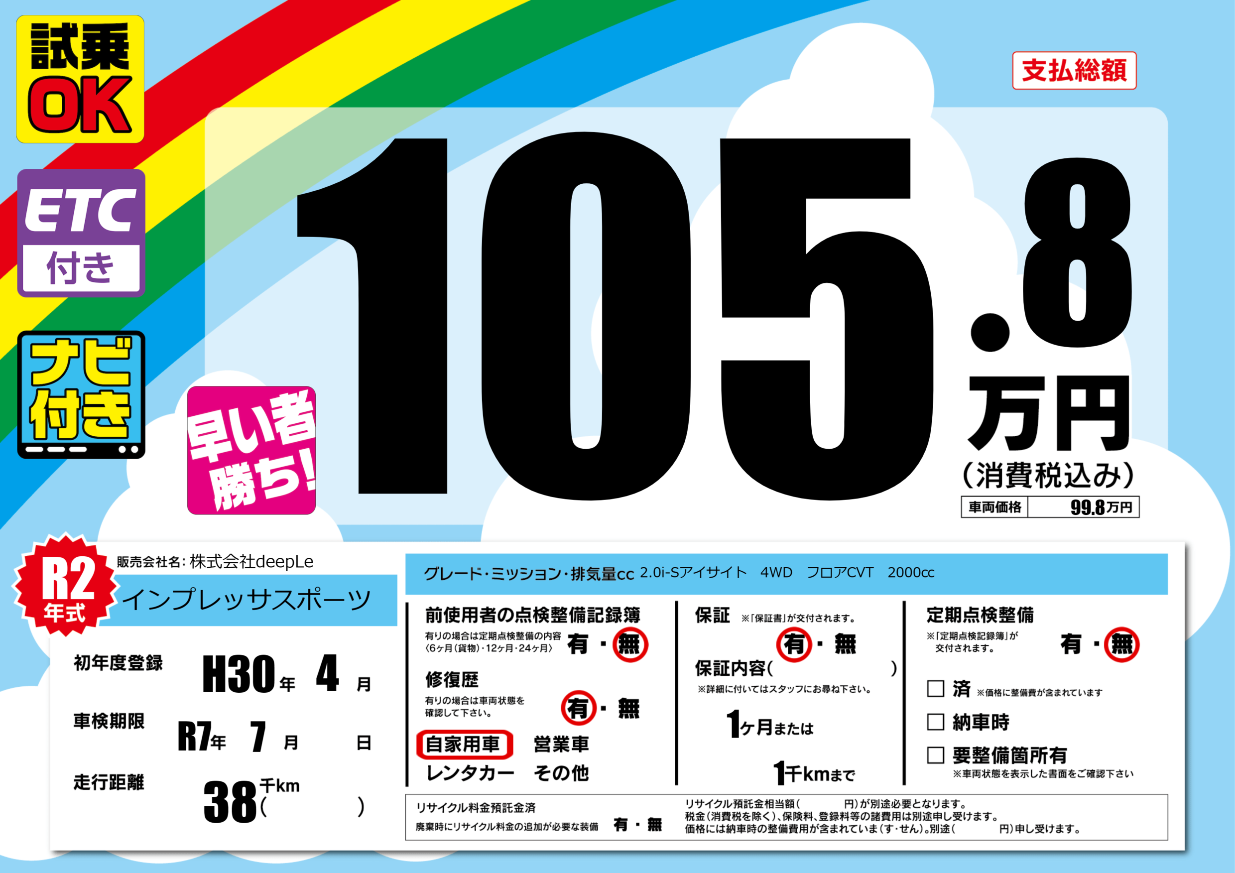 | 車検制限 | R7年 7月 - 日 | ||