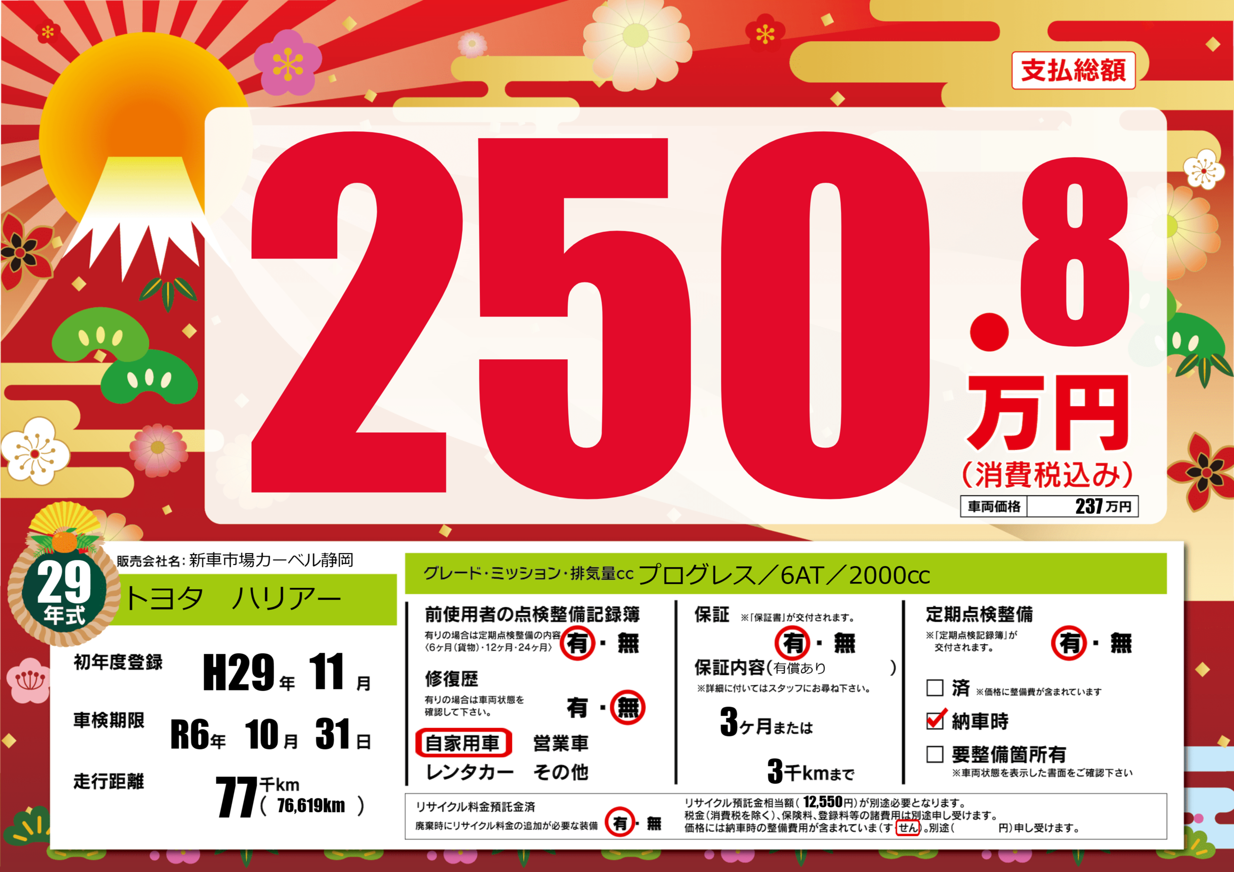 | 車検制限 | R6年 10月 31日 | ||