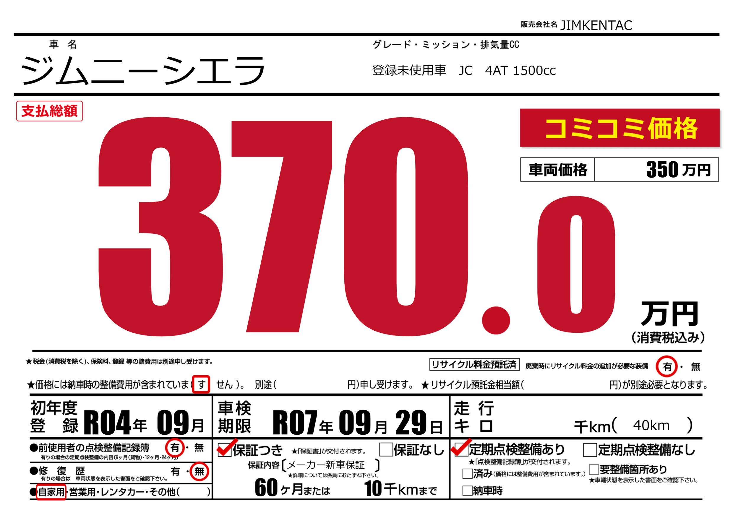 登録未使用車 JC 4AT 1500cc |