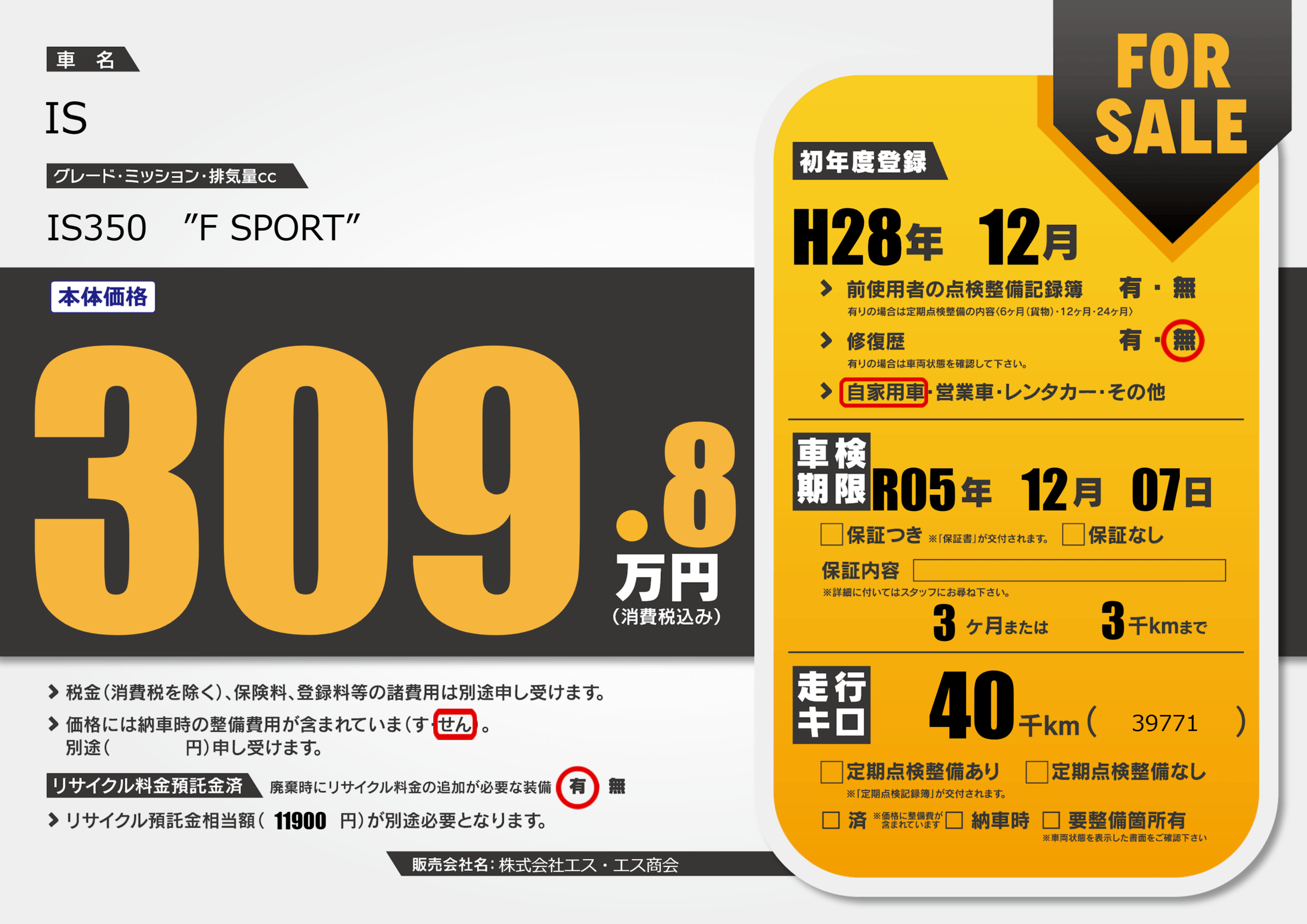 | 走行キロ | 4万km | 初年度登録 | H28年12月 |