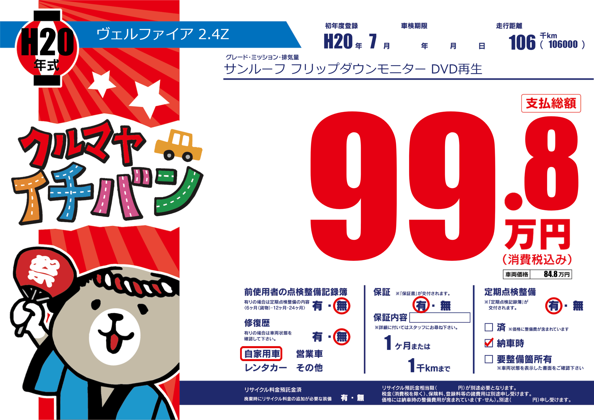 | 定期点検整備 | 定期点検整備あり 納車時あり | ||
