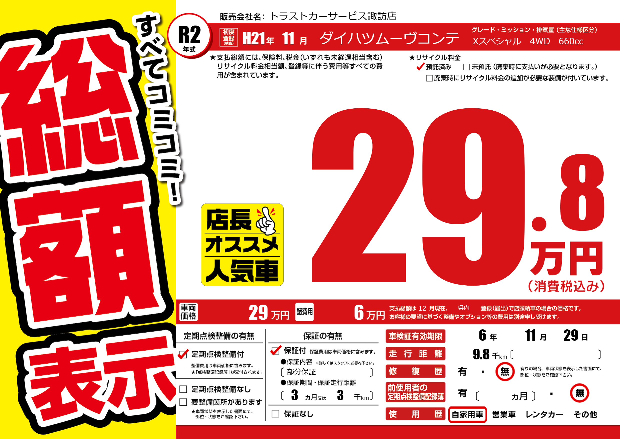 | 車名 | ダイハツムーヴコンテ | グレード ミッション 排気量 |