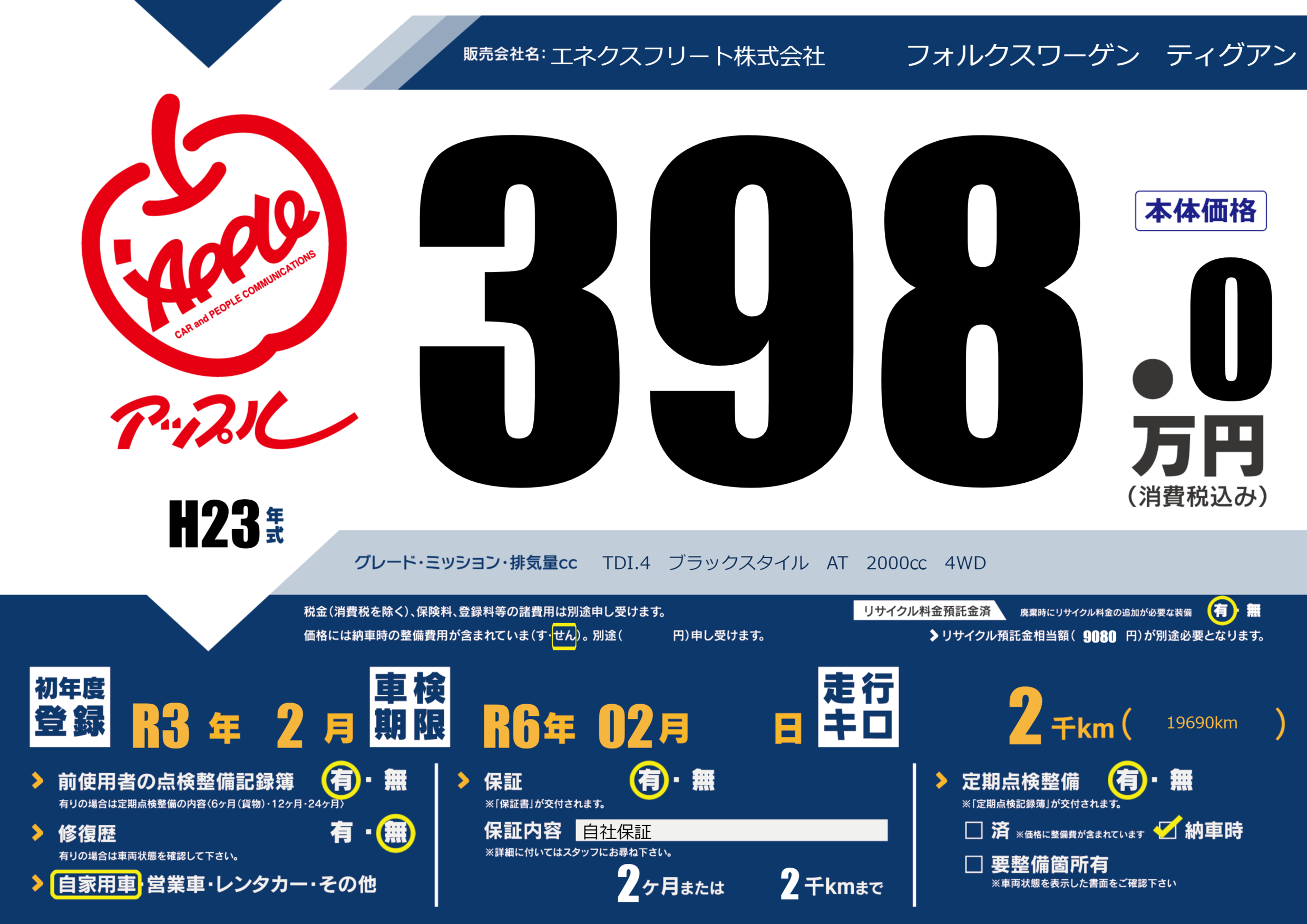 定期点検整備 定期点検整備あり 納車時あり