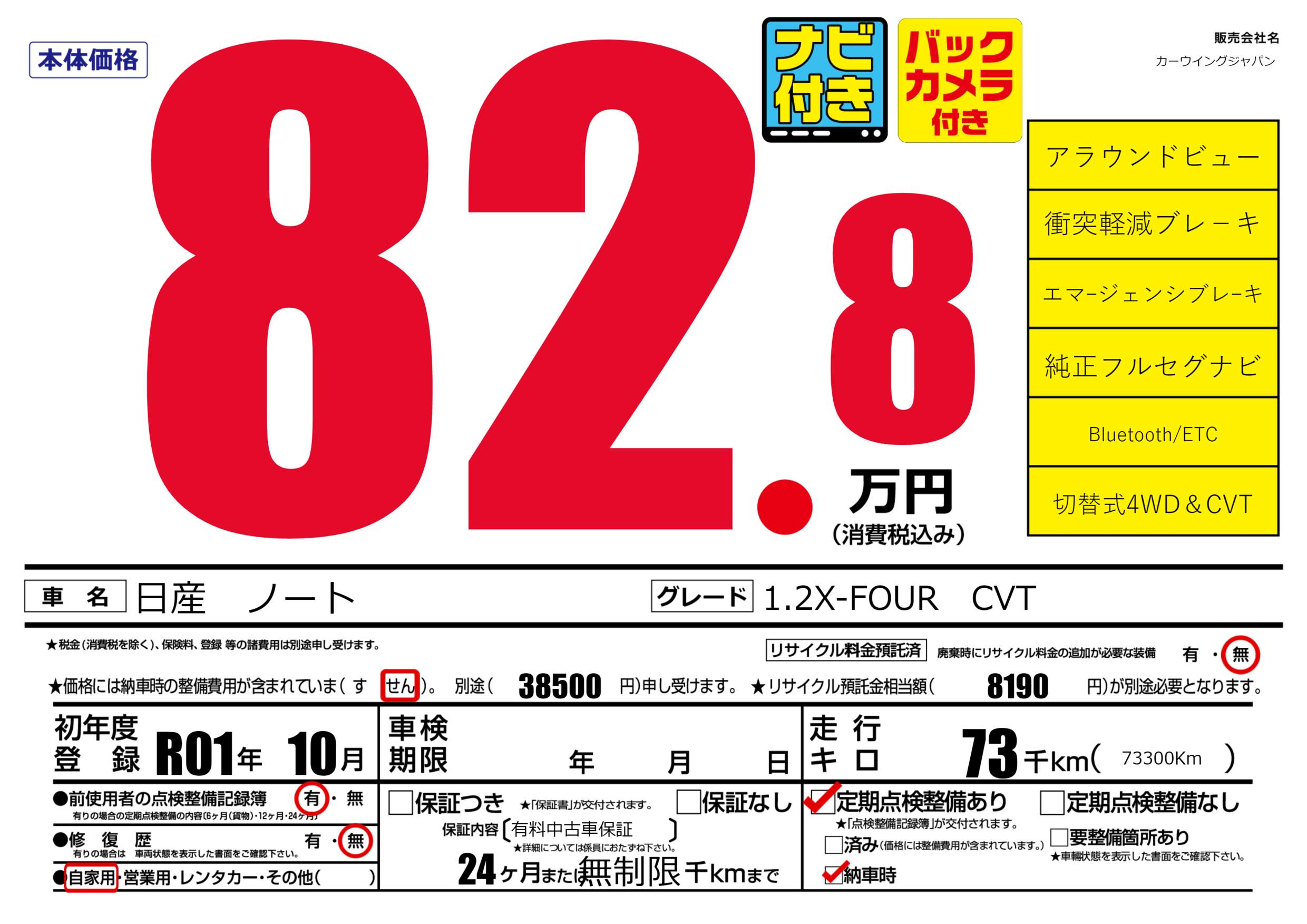 保証なし 保証内容(有料中古車保証) 24ヶ月または(無制限)千kmまで |
