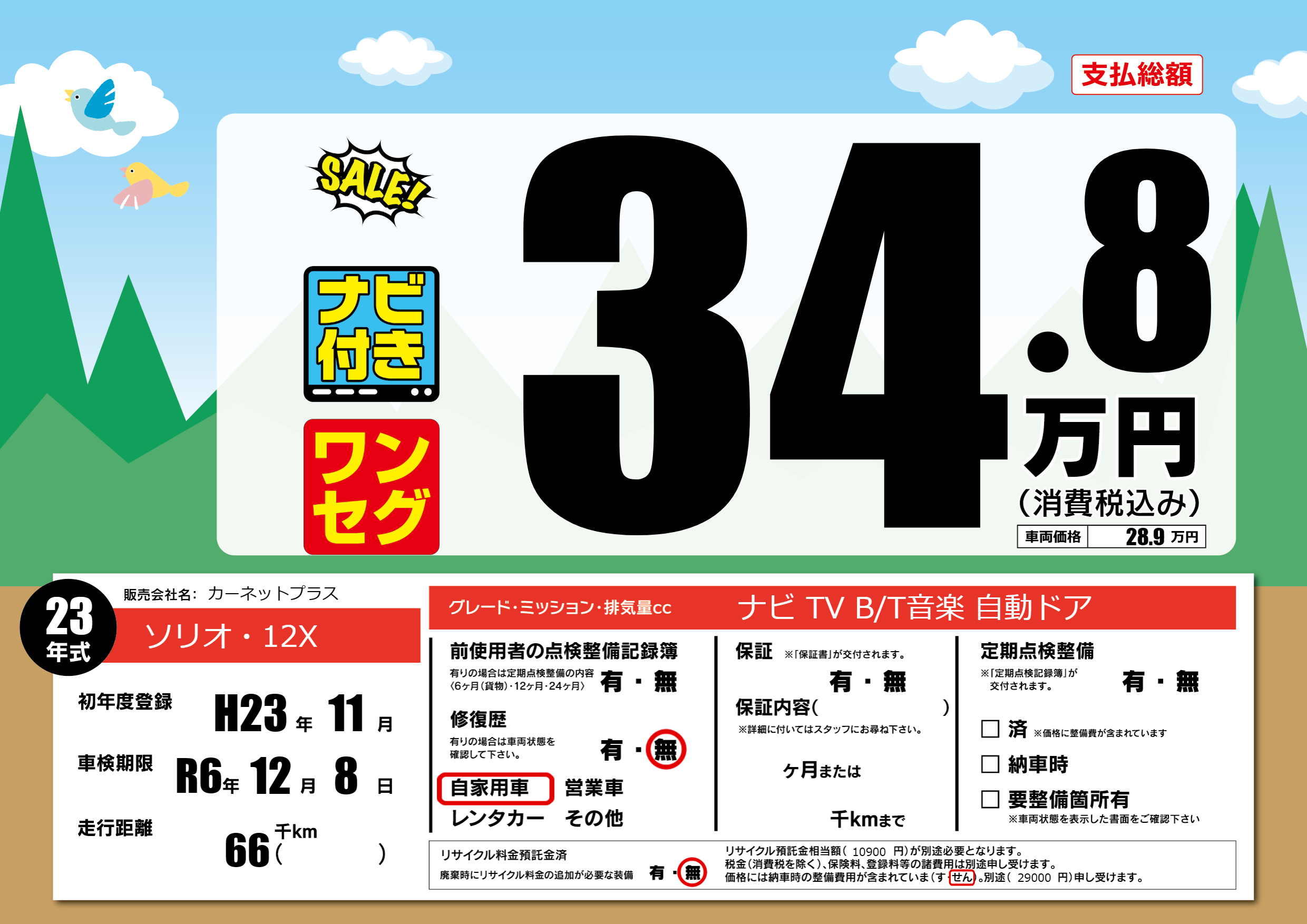 | 車名 | ソリオ・12X | グレード ミッション 排気量 |