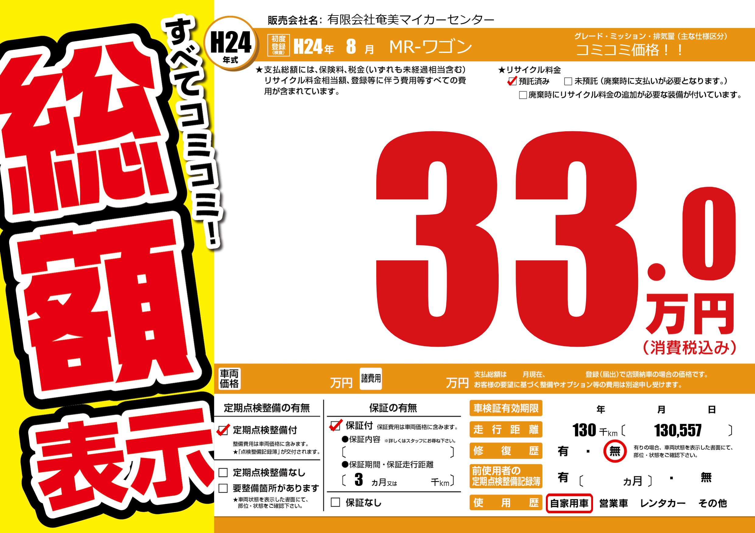 | 車名 | MR-ワゴン | グレード ミッション 排気量 |