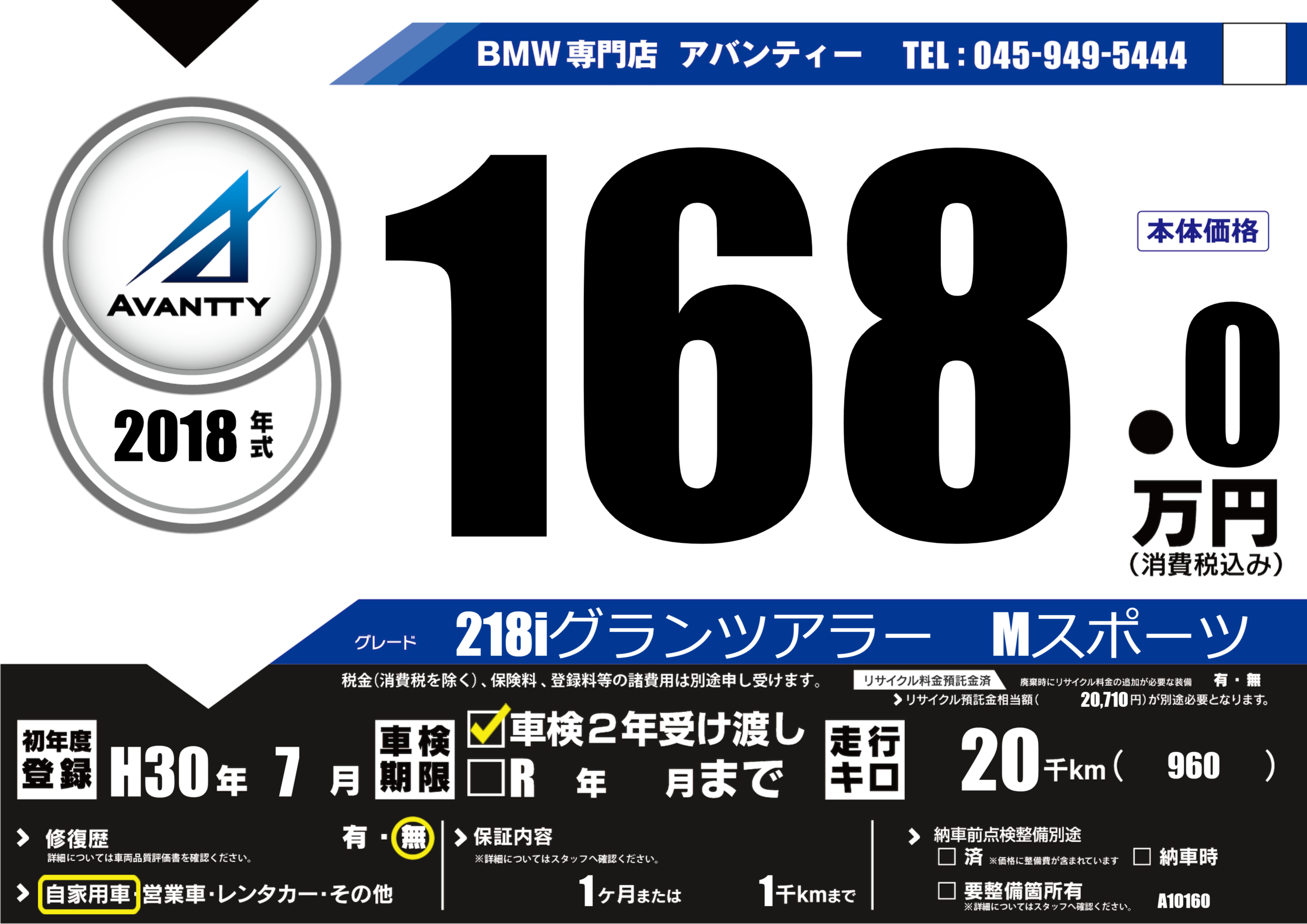 | 走行キロ | 2万km | 初年度登録 | H30年7月 |