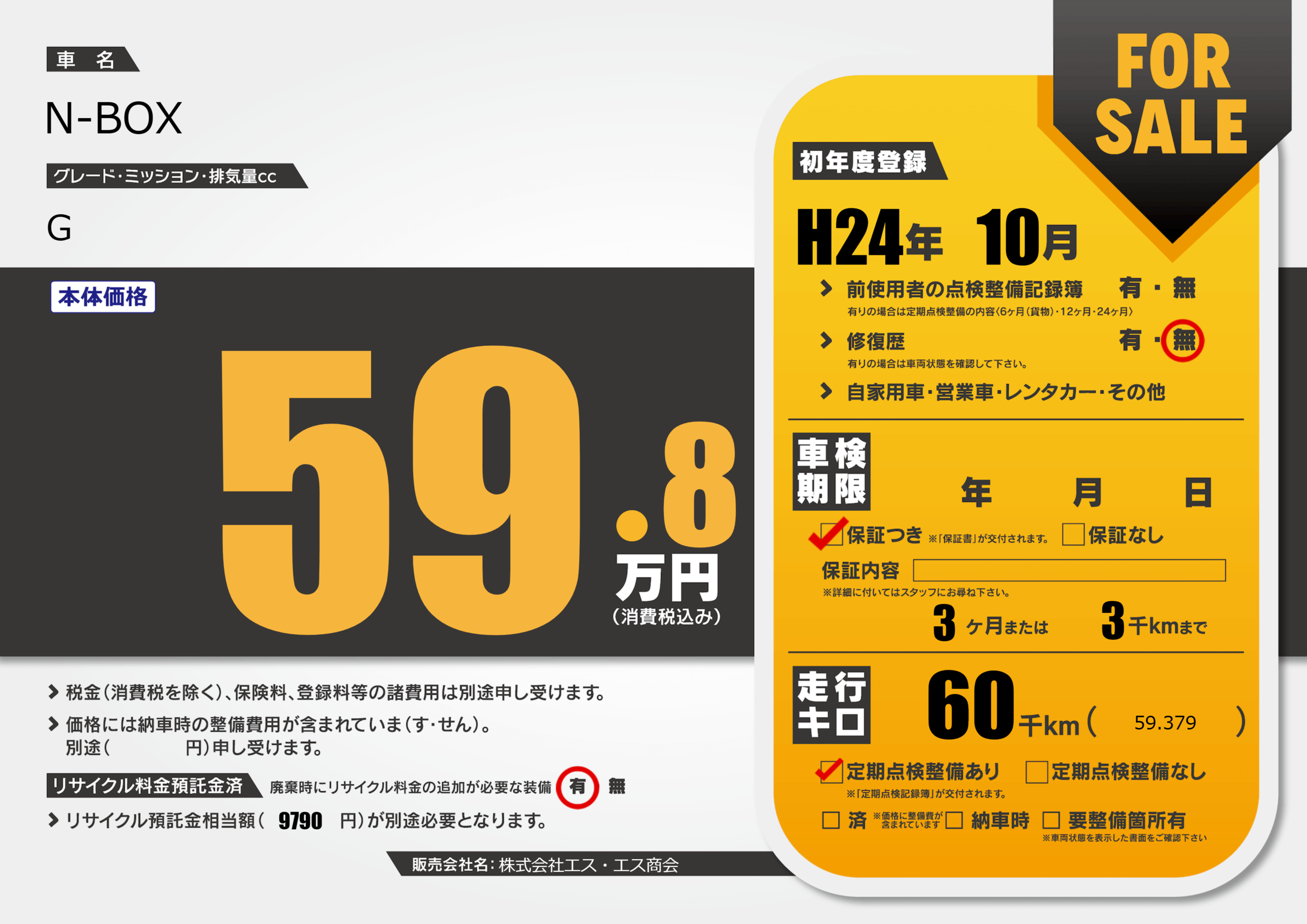保証付き 保証内容(---) 3ヶ月または(3)千kmまで |