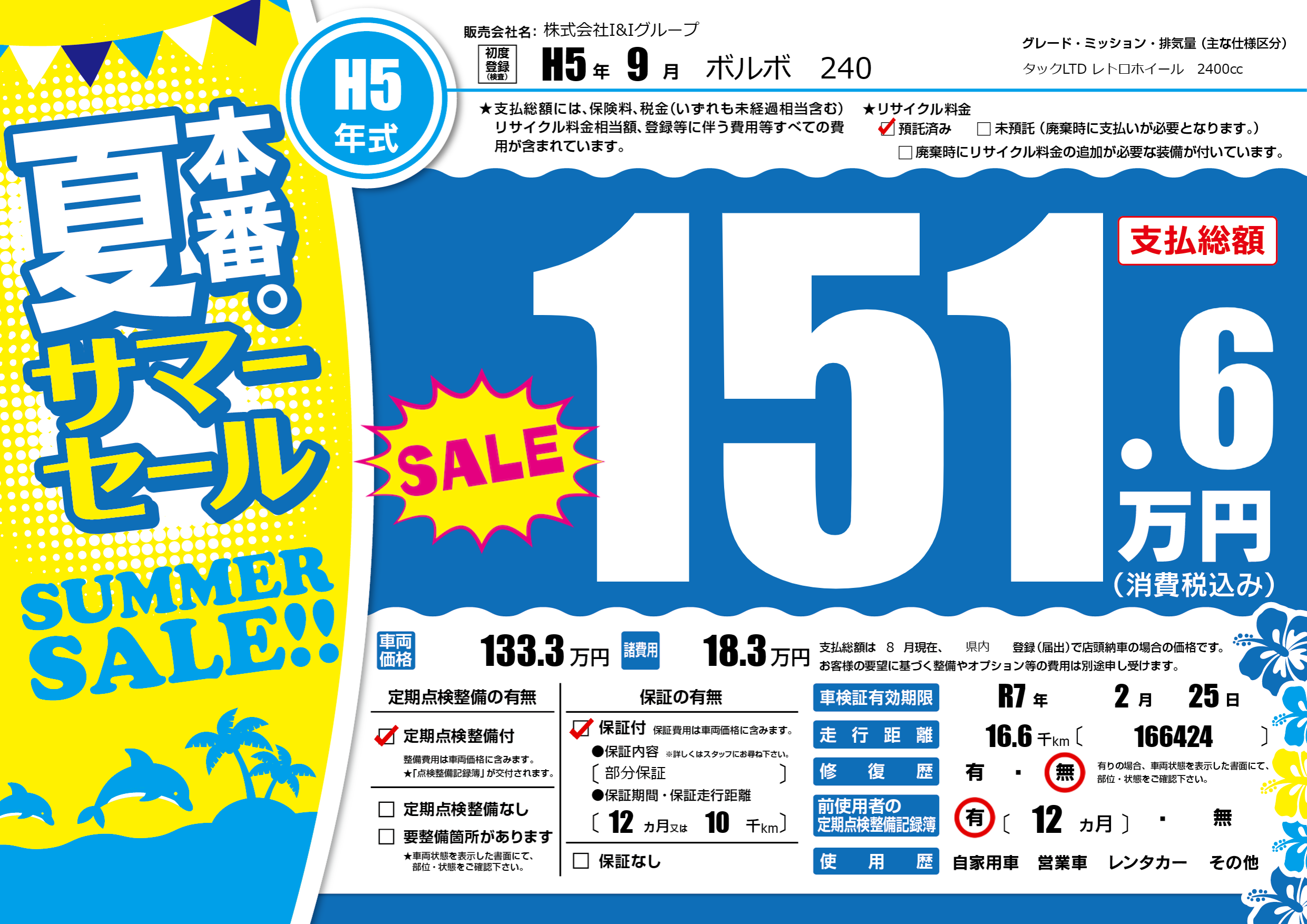 | 走行キロ | 1.6万km | 初年度登録 | H5年9月 |
