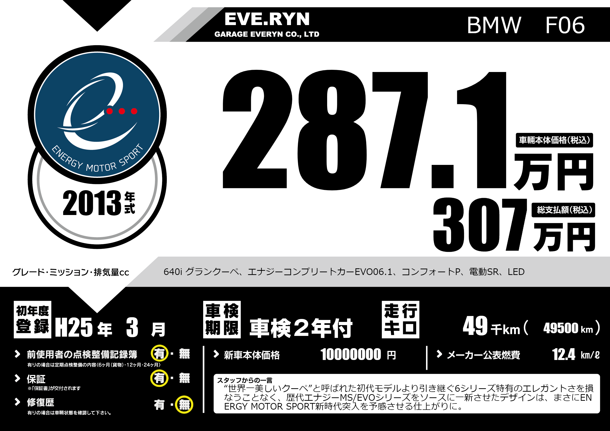 640i グランクーペ、エナジーコンプリートカーEVO06.1、コンフォートP、電動SR、LED |