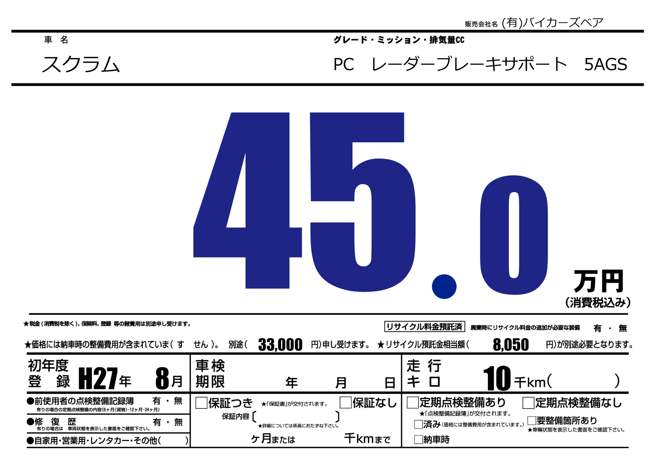 | 車名 | スクラム | グレード ミッション 排気量 |