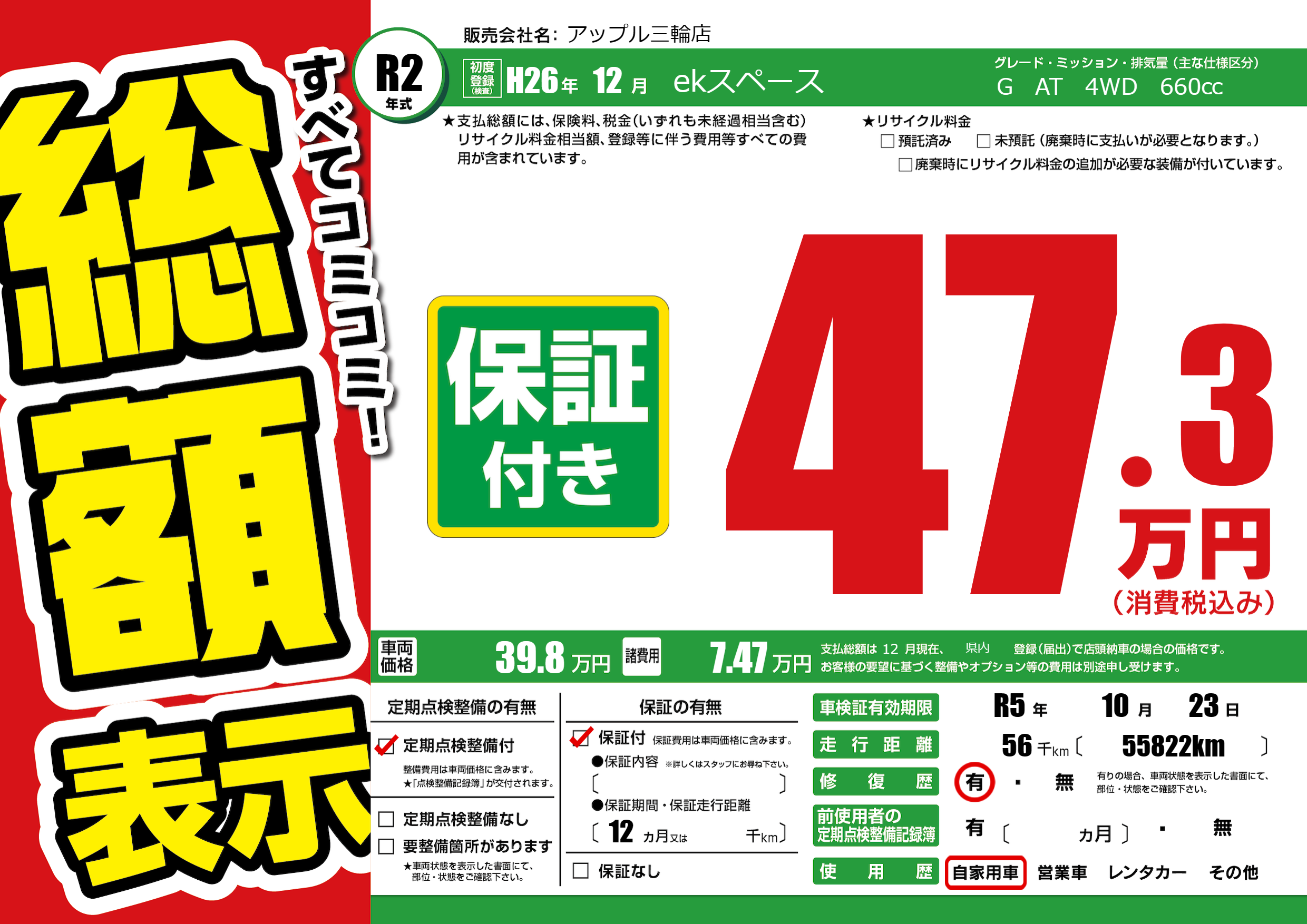 なし | 車検制限 | R5年10月23月 |