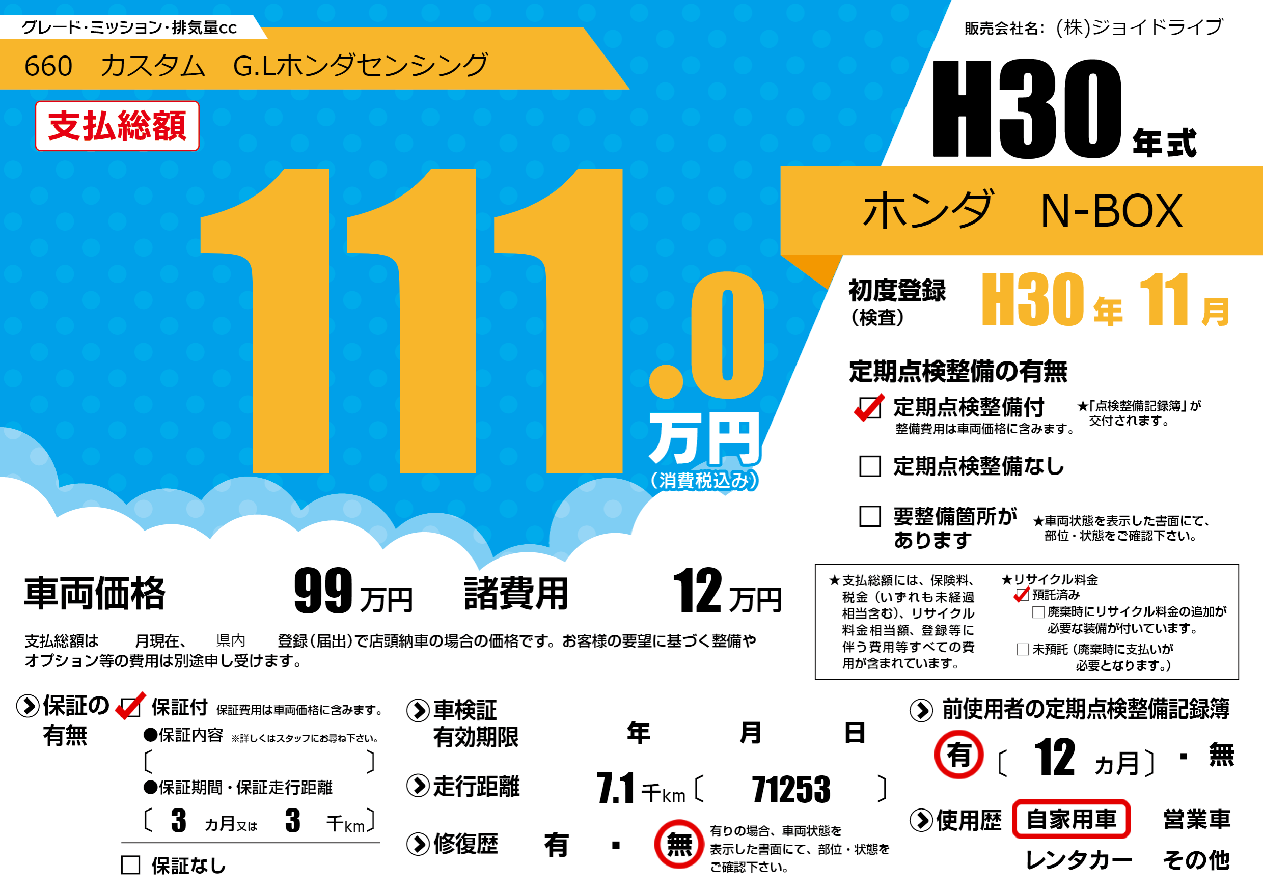 | 初年度登録 | H30年11月 | ||
