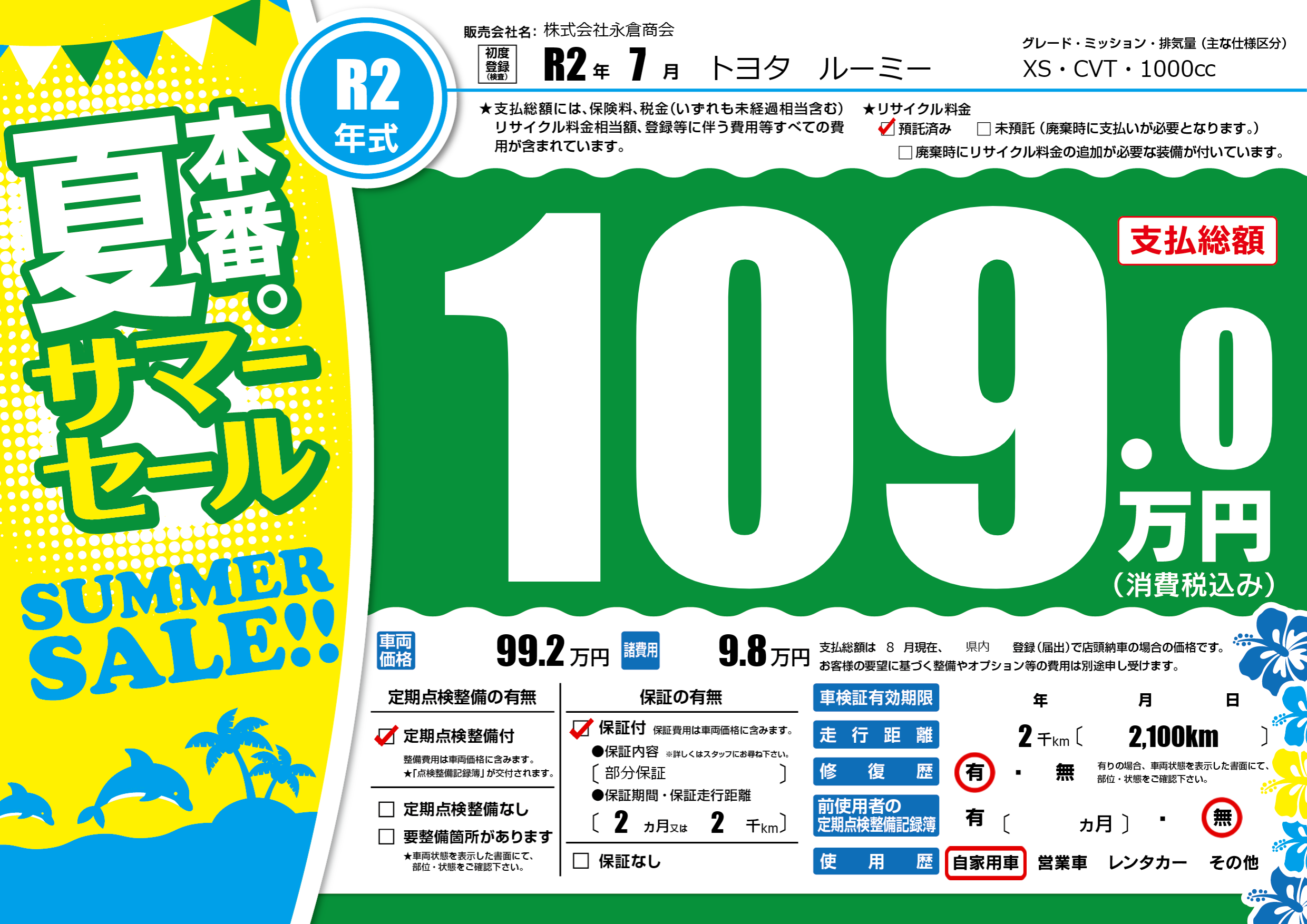 | 走行キロ | 0.2万km | 初年度登録 | R2年7月 |
