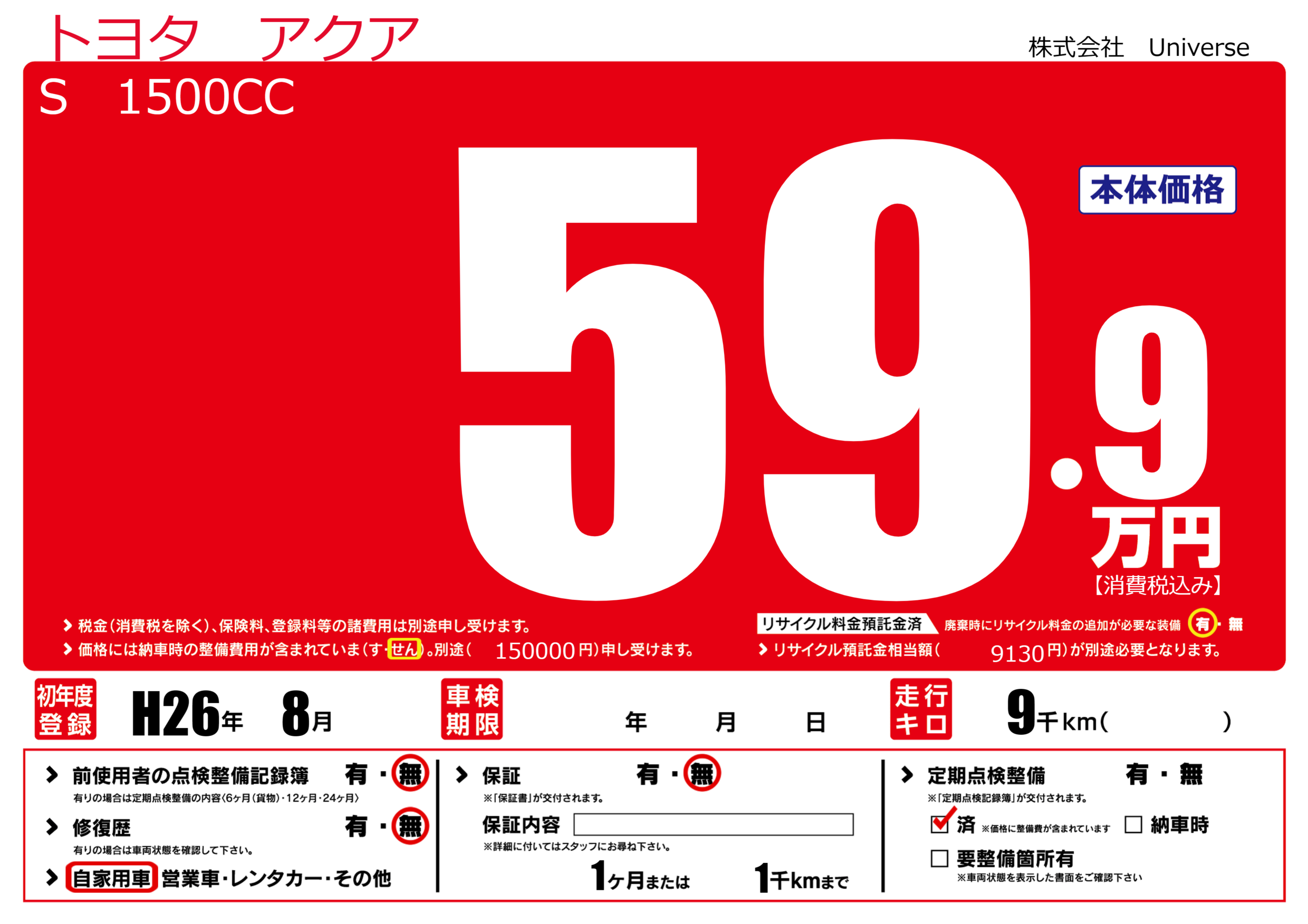 | 定期点検整備 | 定期点検整備済み | ||