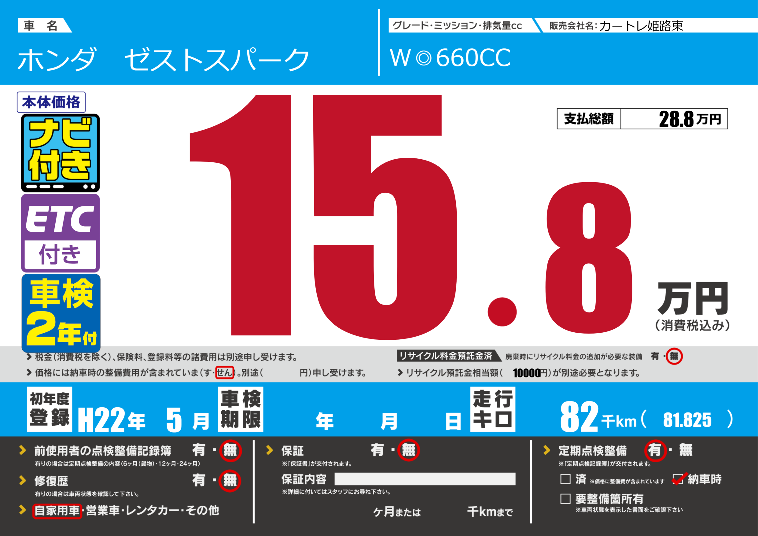 | 定期点検整備 | 定期点検整備あり 納車時あり | ||