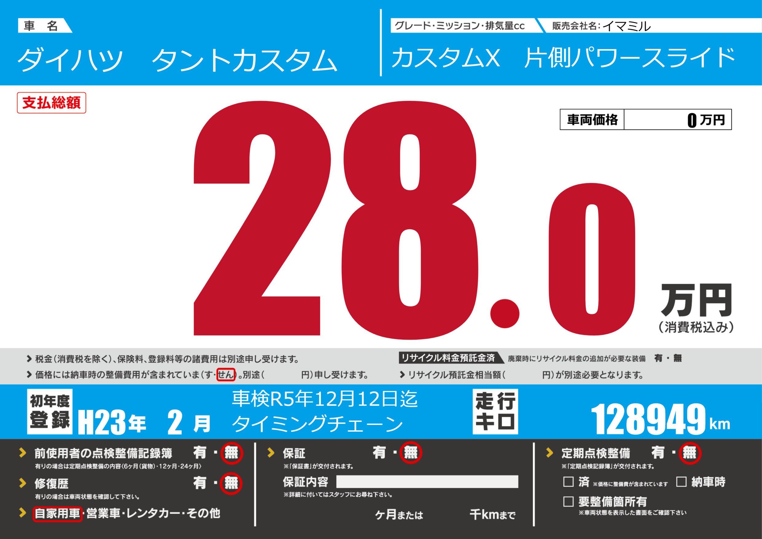 | 走行キロ | 12894.9万km | 初年度登録 | H23年2月 |