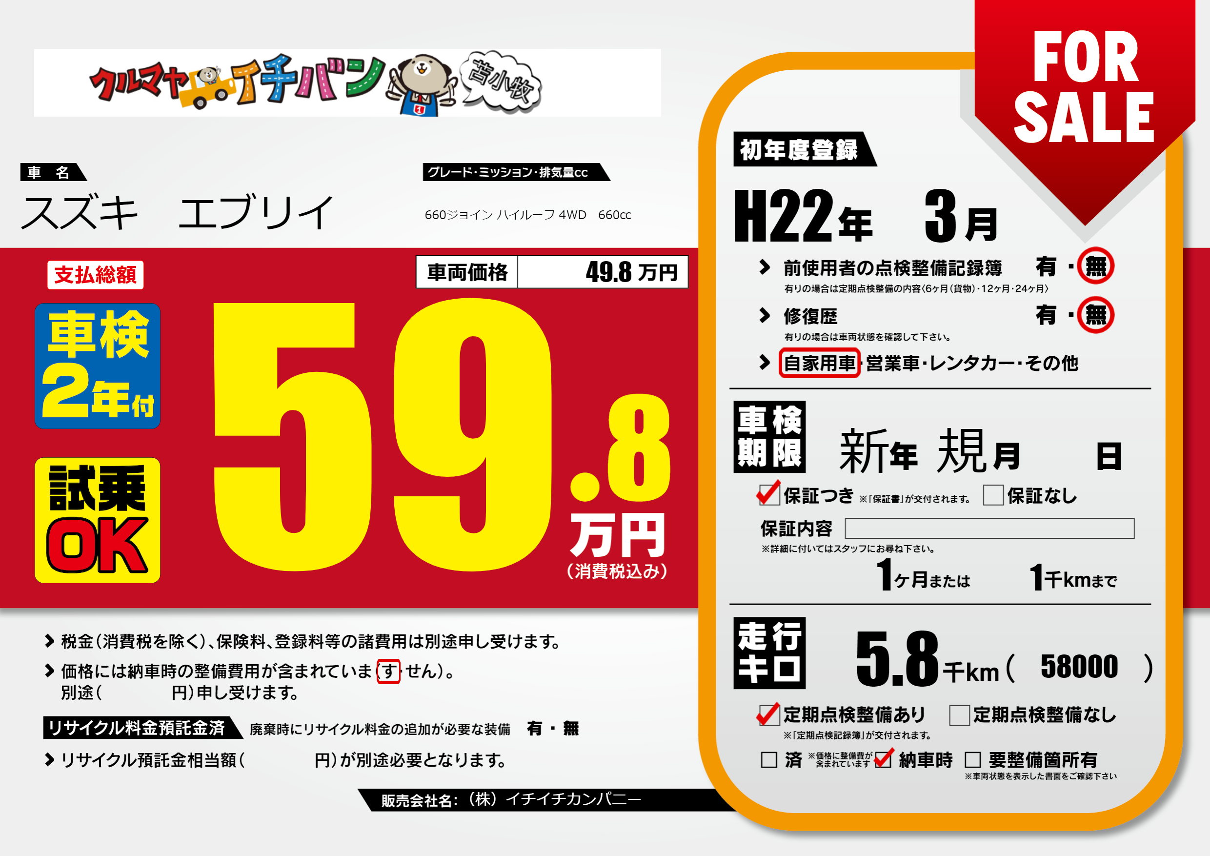 | 車名 | スズキ エブリイ | グレード ミッション 排気量 |