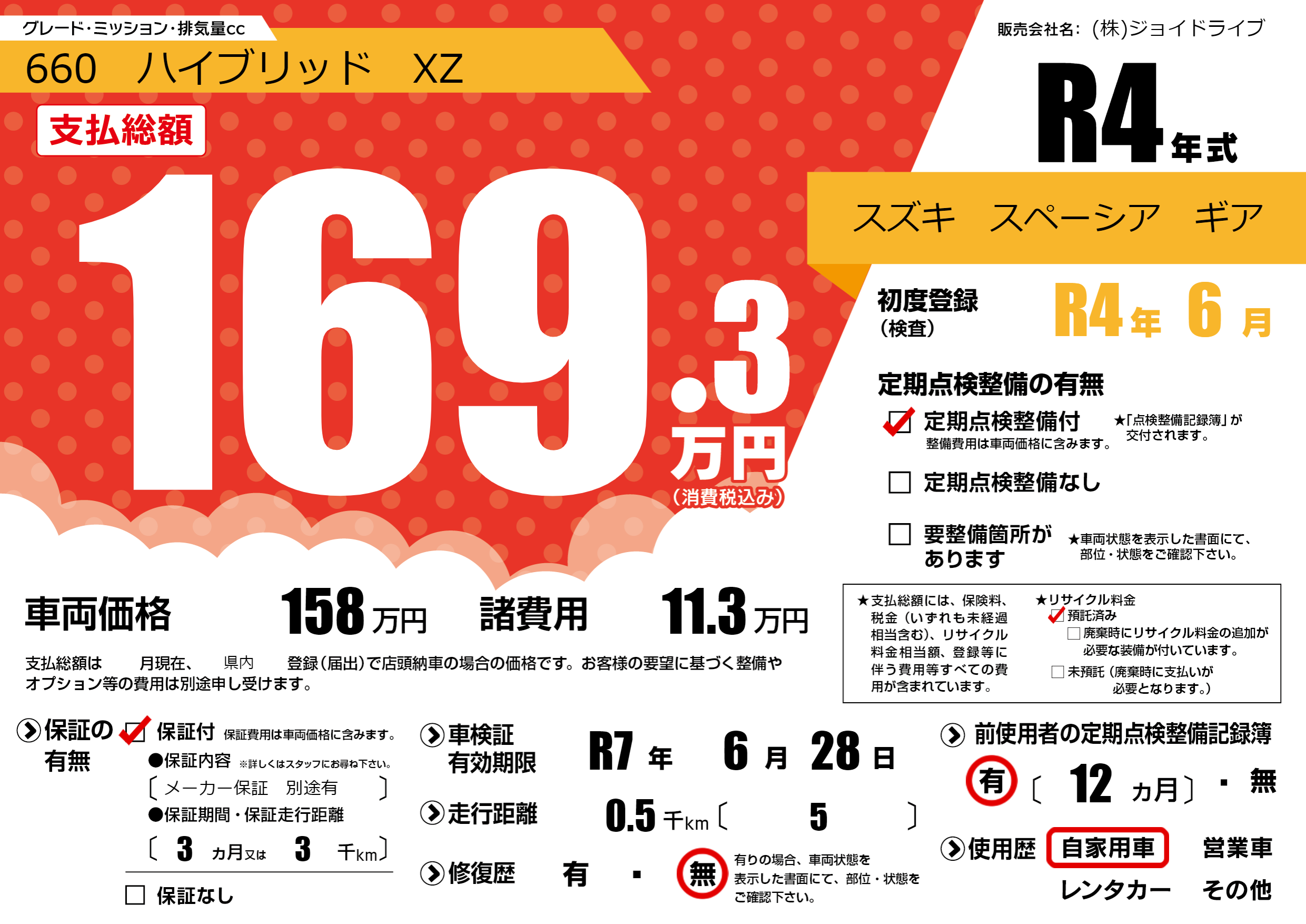 なし | 車検制限 | R7年6月28月 |