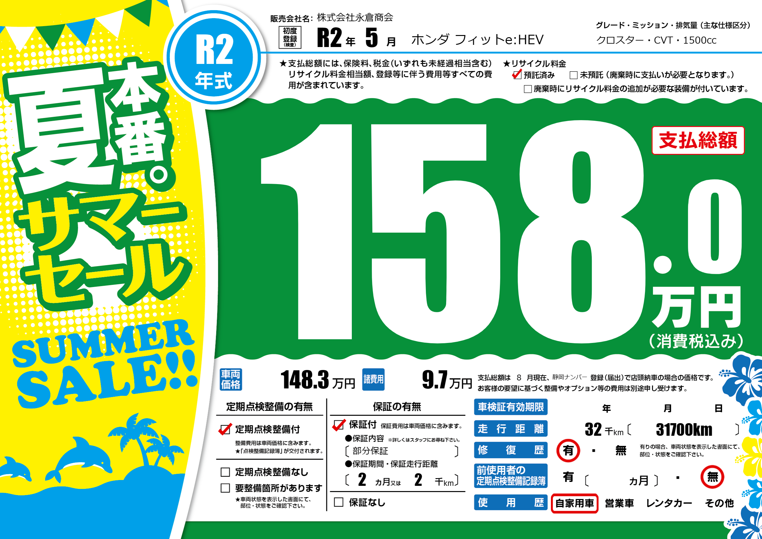 | 車名 | ホンダ フィットe:HEV | グレード ミッション 排気量 |