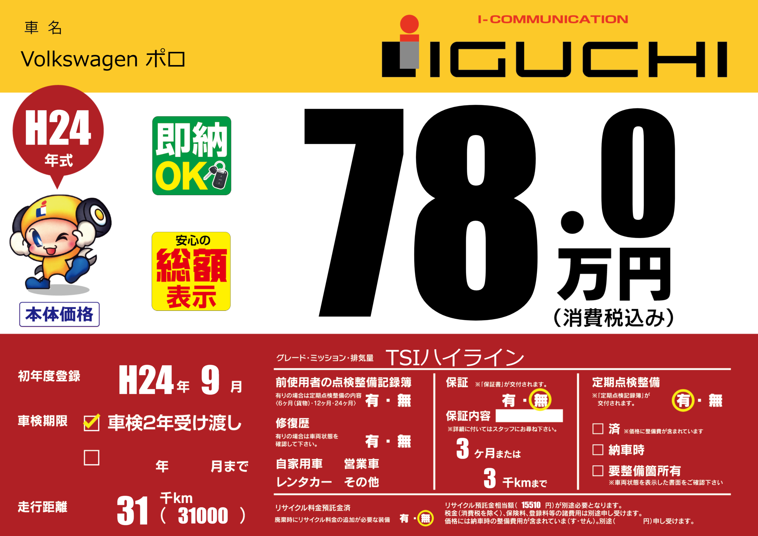 | 車名 | Volkswagen ポロ | グレード ミッション 排気量 |