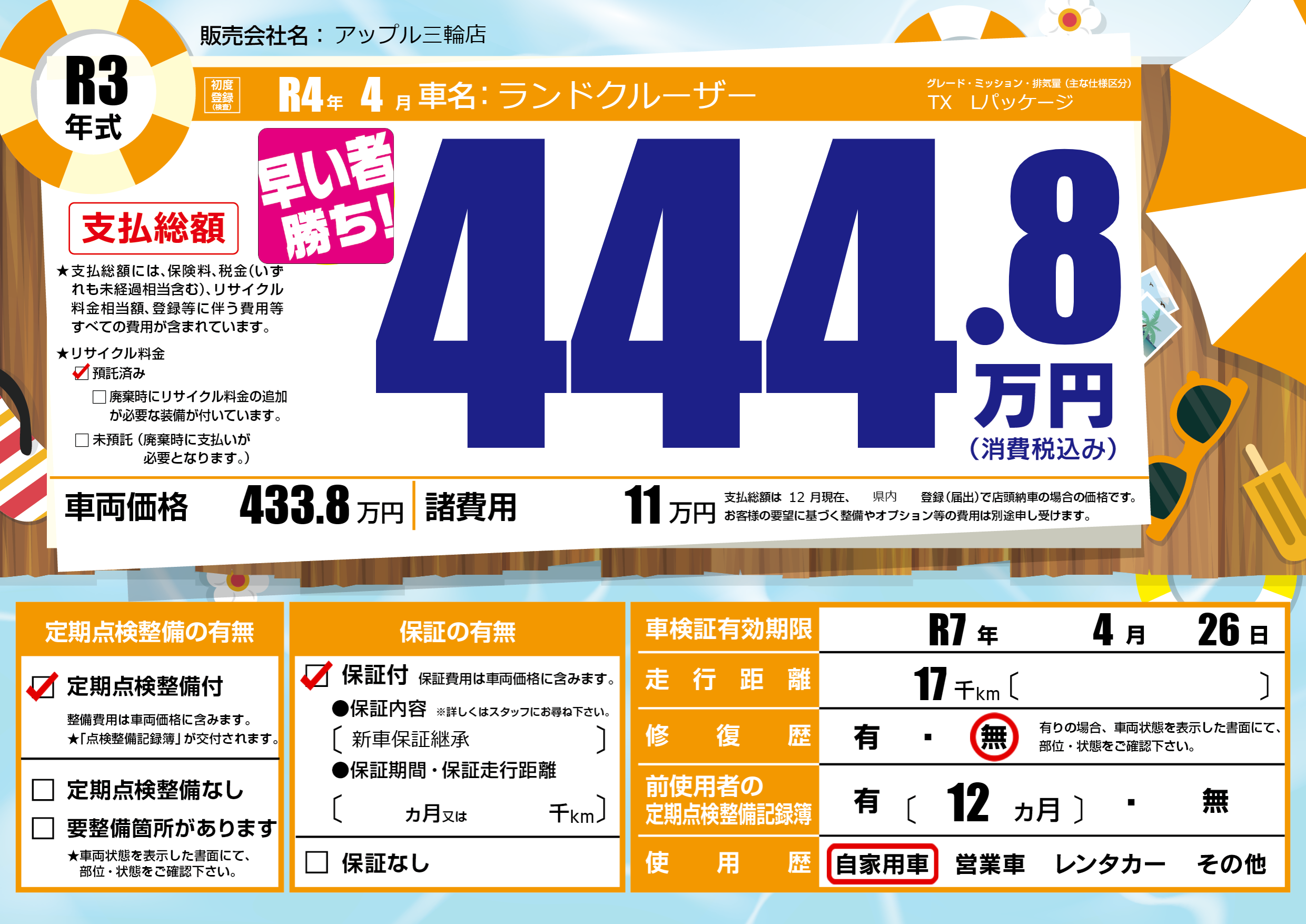 なし | 車検制限 | R7年4月26月 |