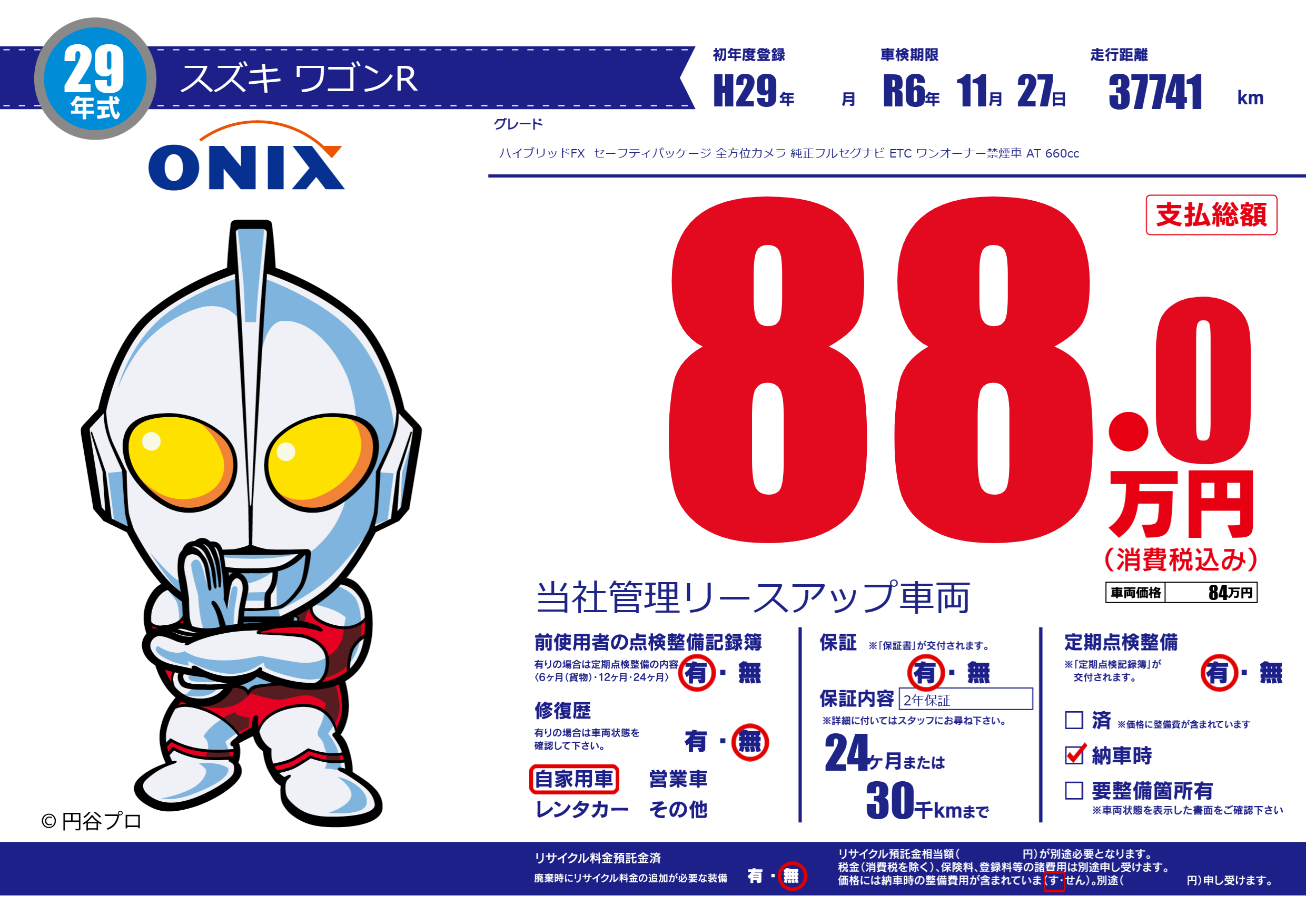 保証付き 保証内容(2年保証) 24ヶ月または(30)千kmまで |