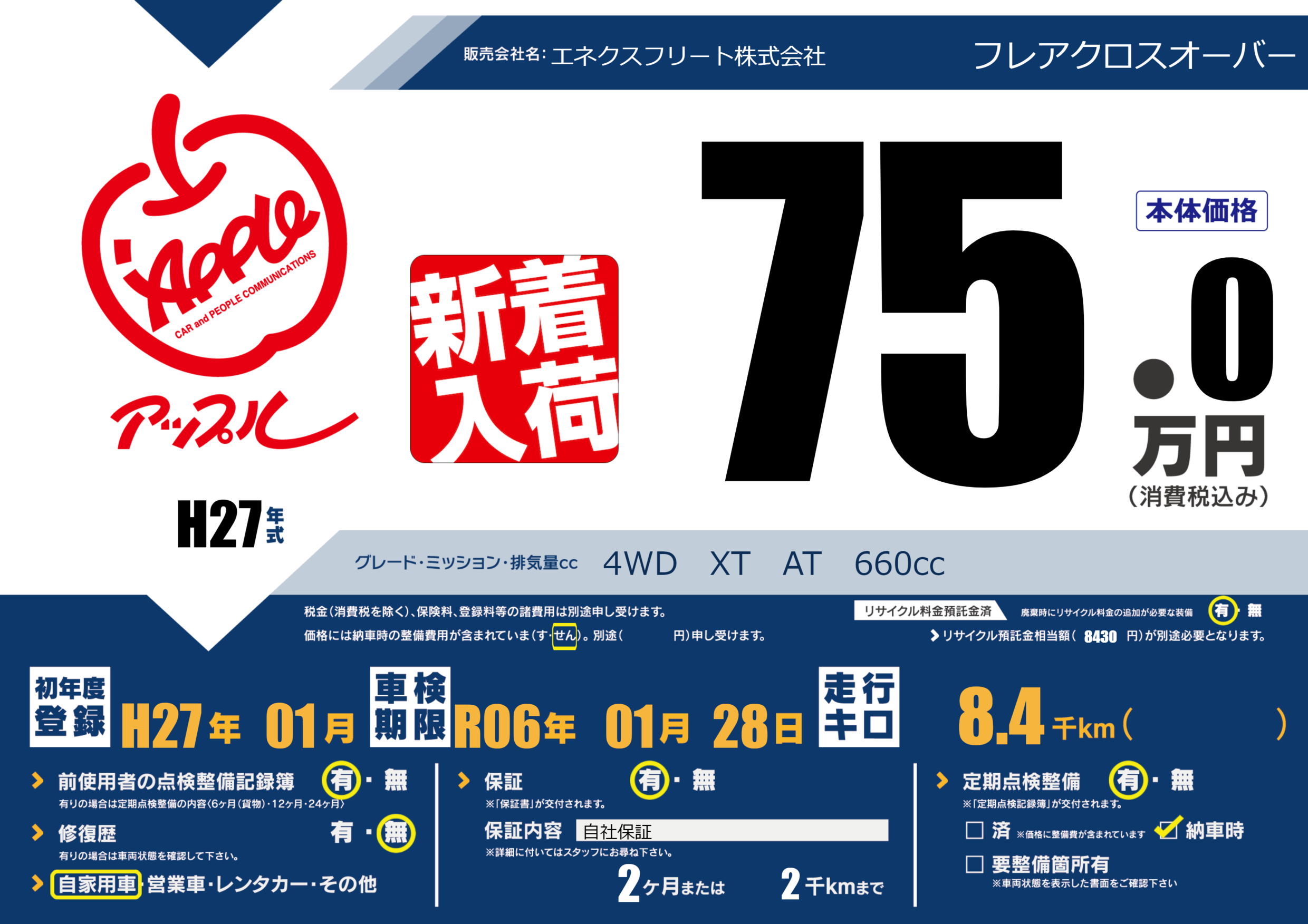 | 車名 | フレアクロスオーバー | グレード ミッション 排気量 |