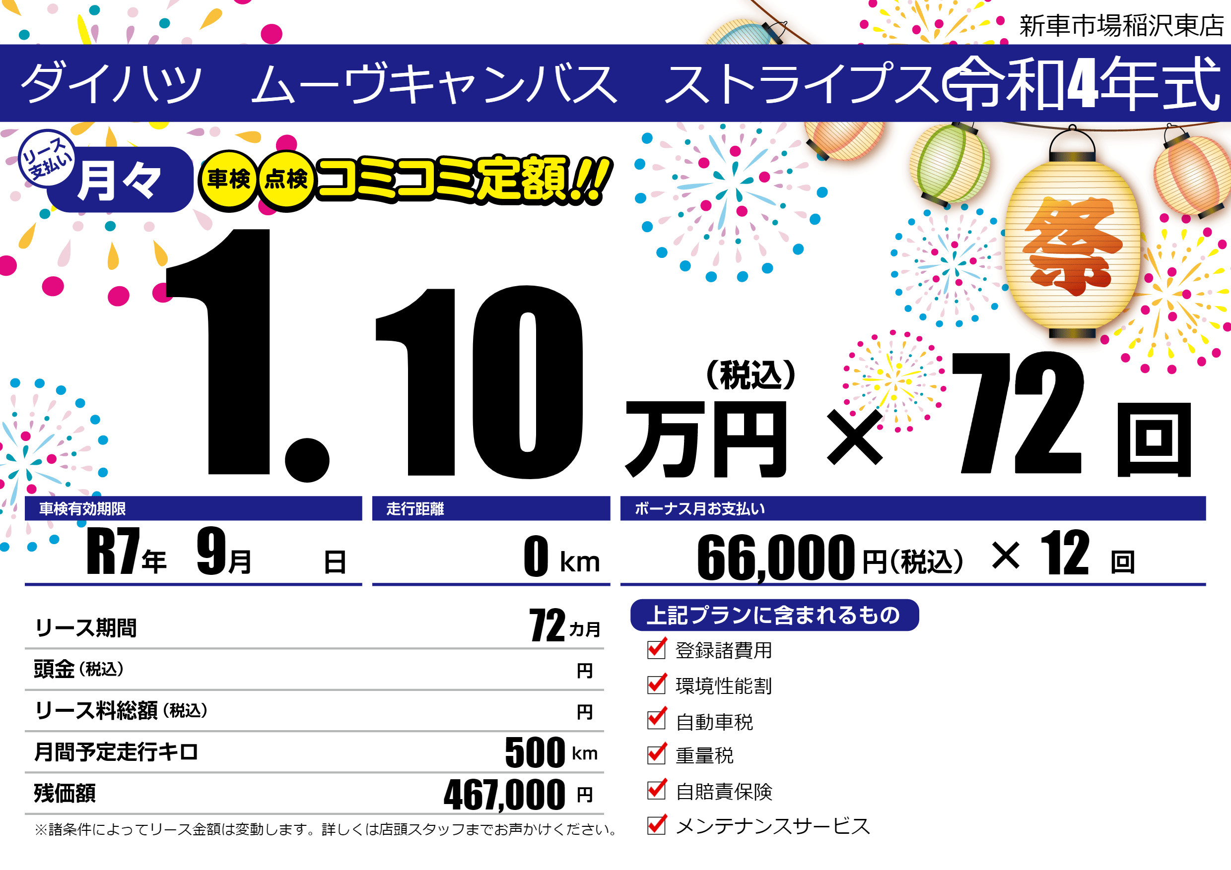 | 車名 | ダイハツ ムーヴキャンバス ストライプスG | グレード ミッション 排気量 |