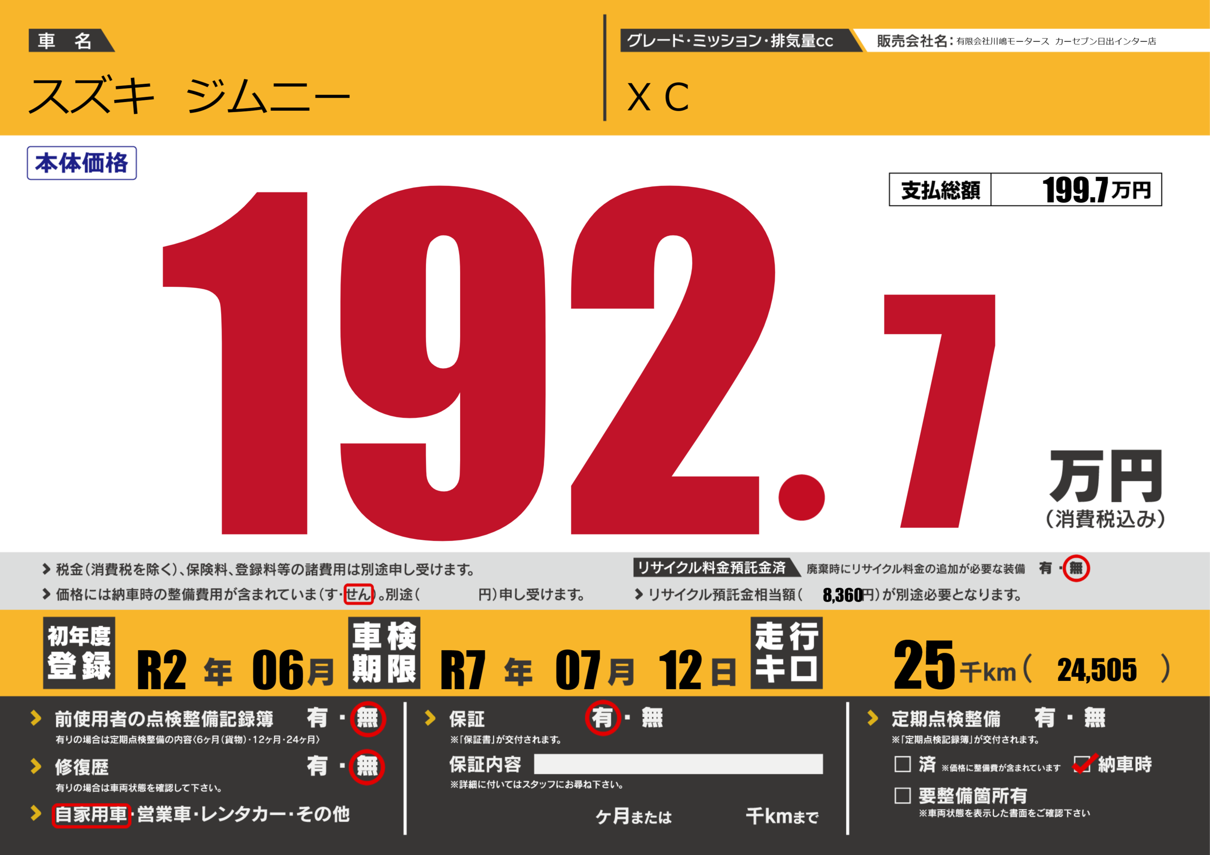 | 車検制限 | R7年 07月 12日 | ||