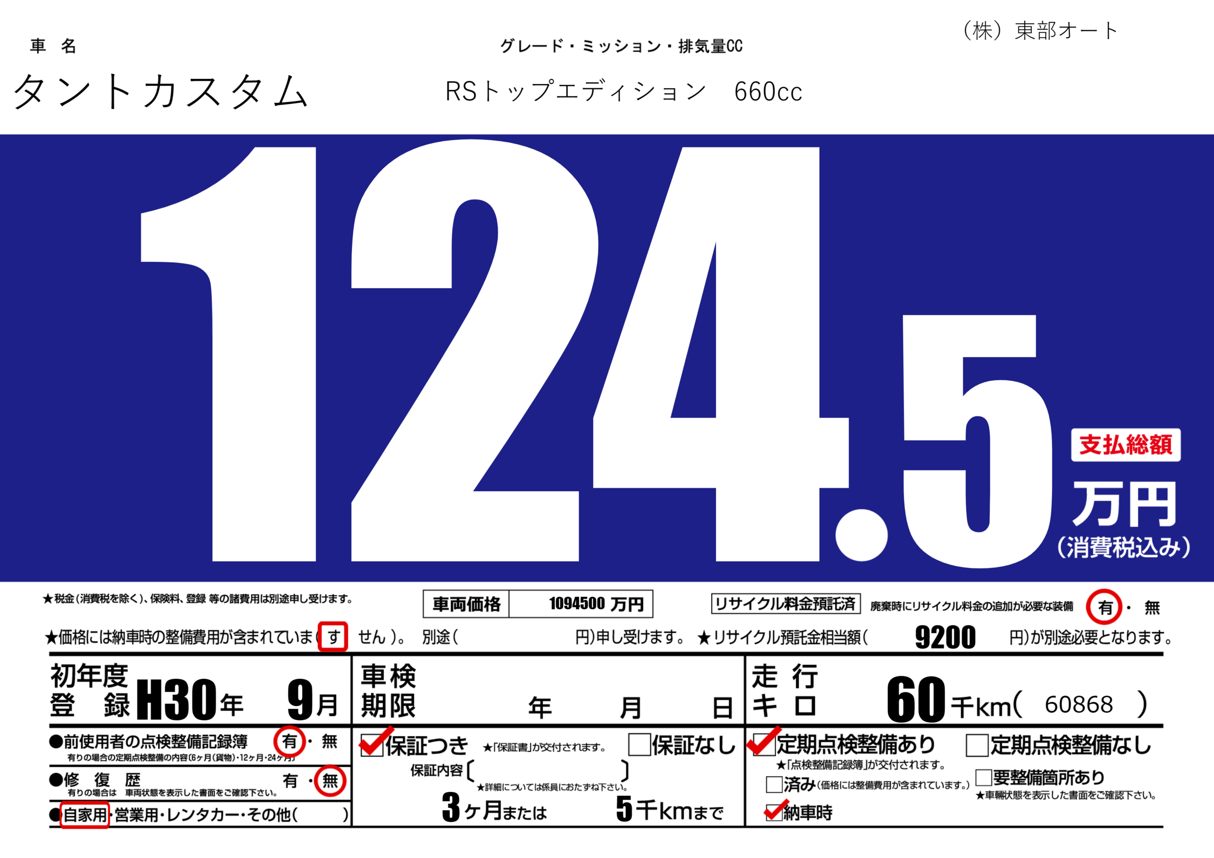 | 車名 | タントカスタム | グレード ミッション 排気量 |