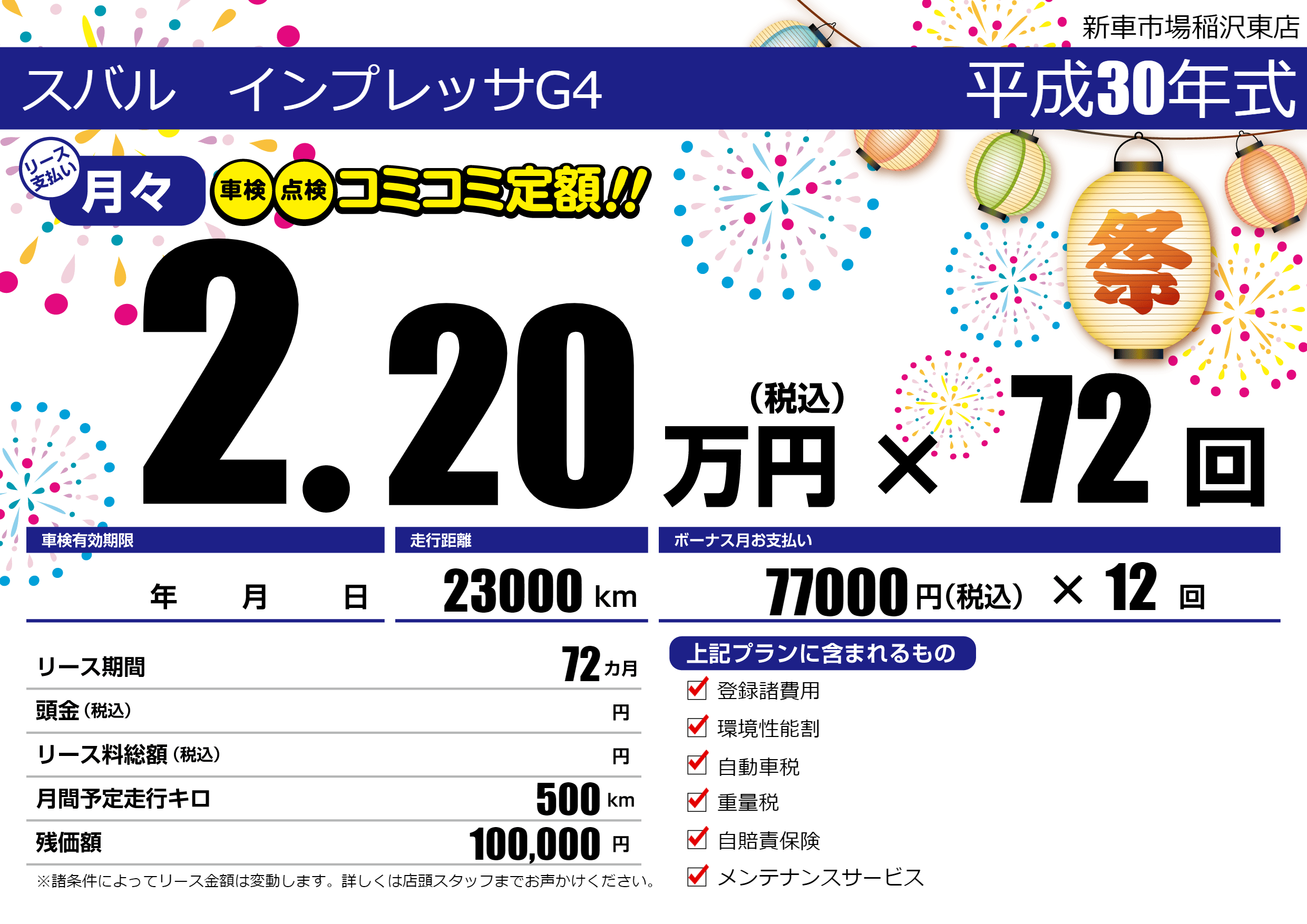 | 車名 | スバル インプレッサG4 | グレード ミッション 排気量 |